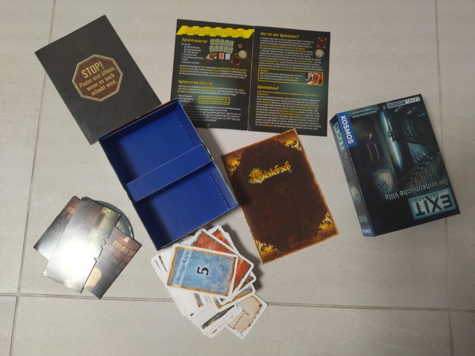 Predám exit hru v nemeckom jazyku: Die unheimliche Villa. Kompletné balenie, nič nechýba ani nie je poškodené. Spolu s návodom aj riešením. Odporúčaný vek: 12 rokov. Dĺžka hry 60-120 minút. Počet hráčov: 1-4. Vhre budete postupovať podľa kariet s úlohami a rebusmi, pomôžu vám napovedať a odpovede. To, či ste n dobrej ceste, vám pomôže rozlúštiť desifrovací kotúč. Hra je odporúčaná pre pokročilých.