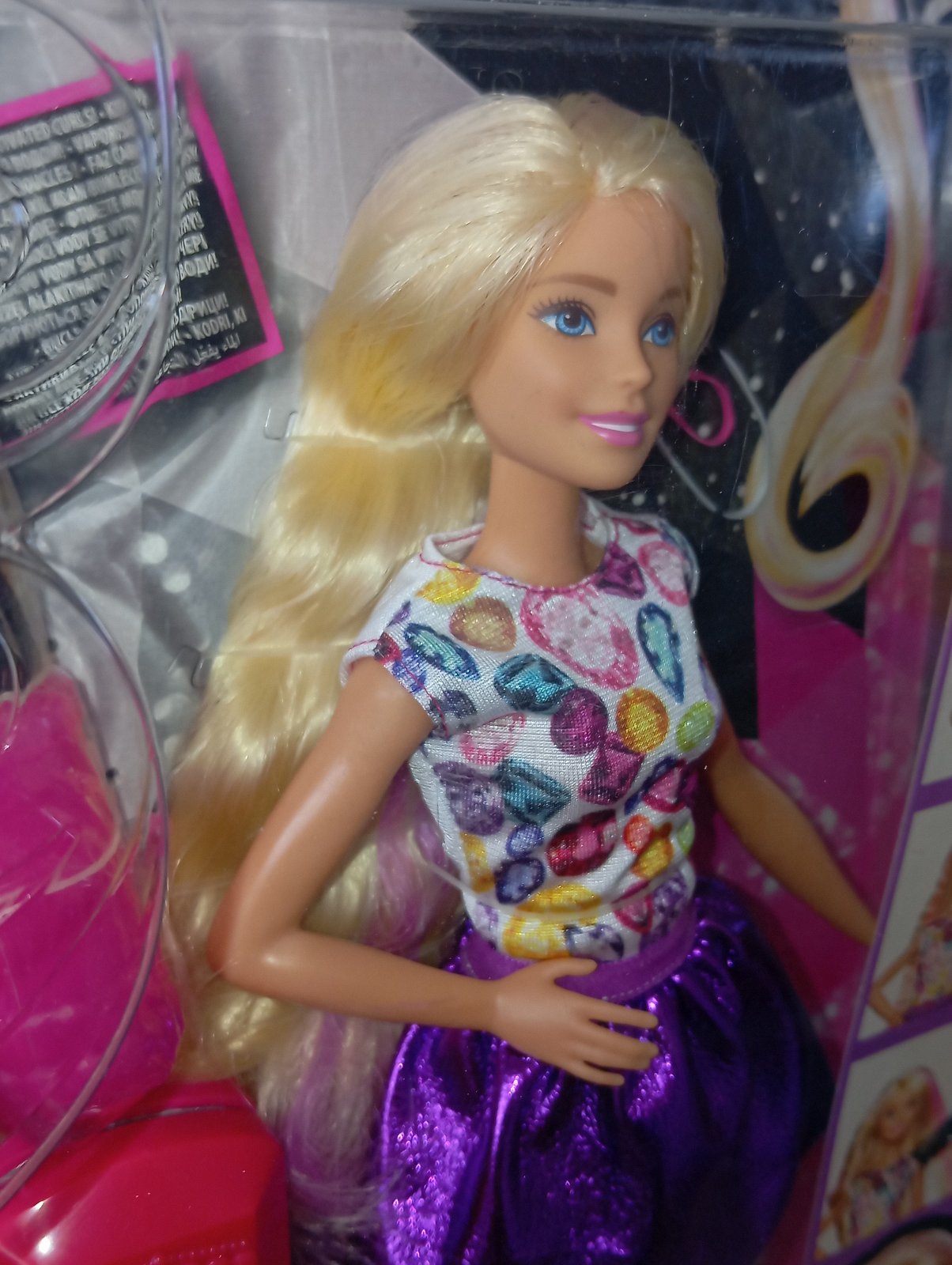 Nehraná barbie bábika v krabici. Bábike sa pomocou vody nakrepujú alebo navlnia vlasy.
