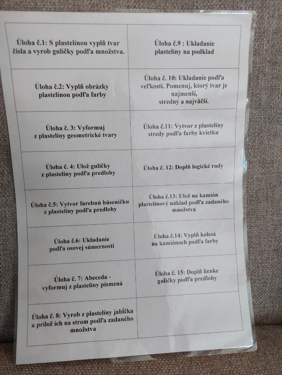 Zalaminované pracovné listy pre hru s plastelínou. Plastelína nieje súčasťou