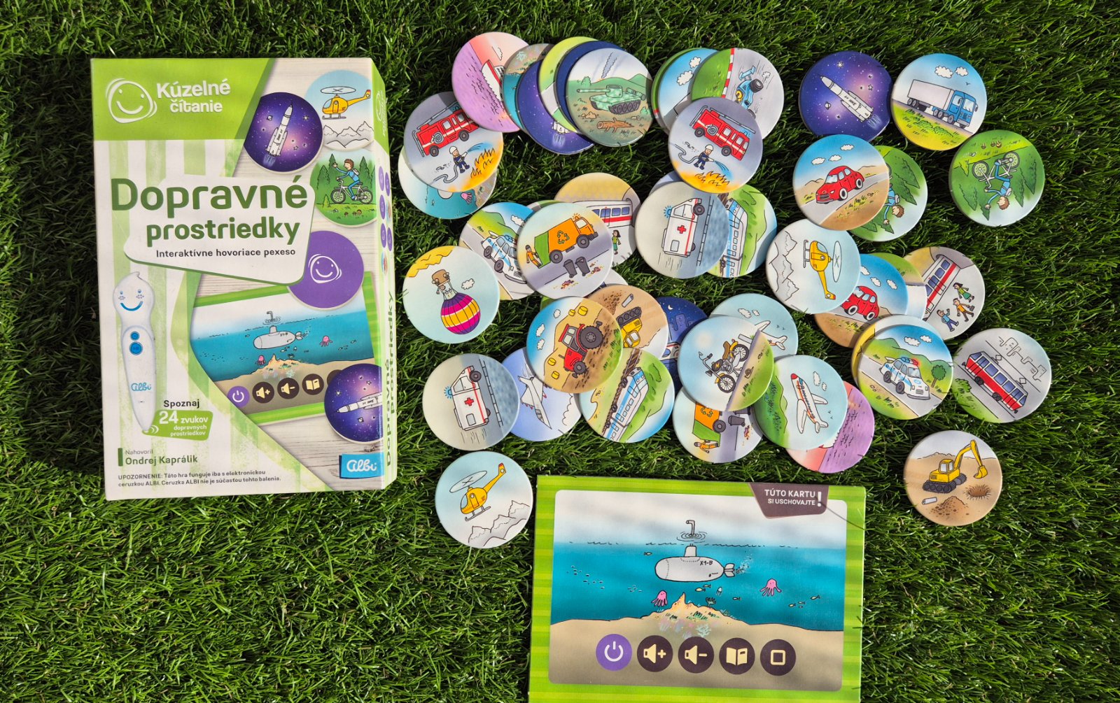 Kúzelné hovoriace pexeso Dopravné prostriedky kombinuje precvičovanie vizuálnej a sluchovej pamäti detí. Deti sa tak budú učiť rozpoznávať zvuky, ktoré nás obklopujú.
