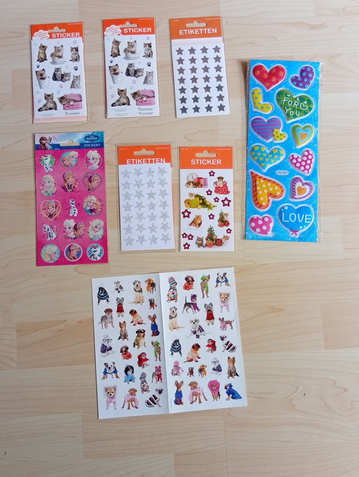 Tretia fotka úplne nové nálepky. V prvom rade sú v balení po 3 listy nálepiek, v druhom po 1 liste. Srdiečkové sú 3D