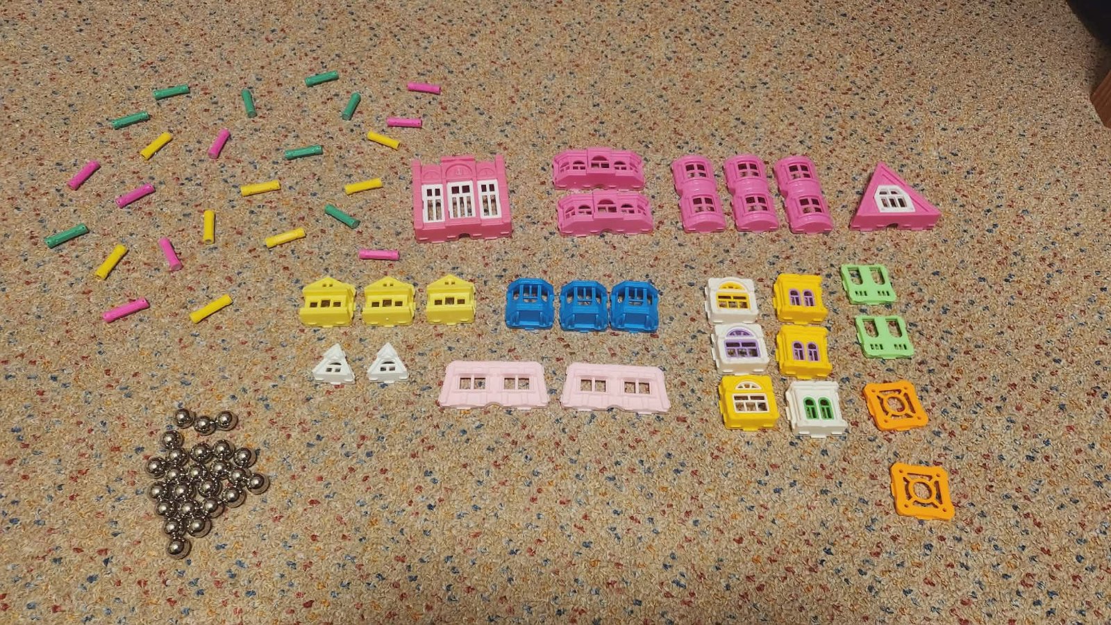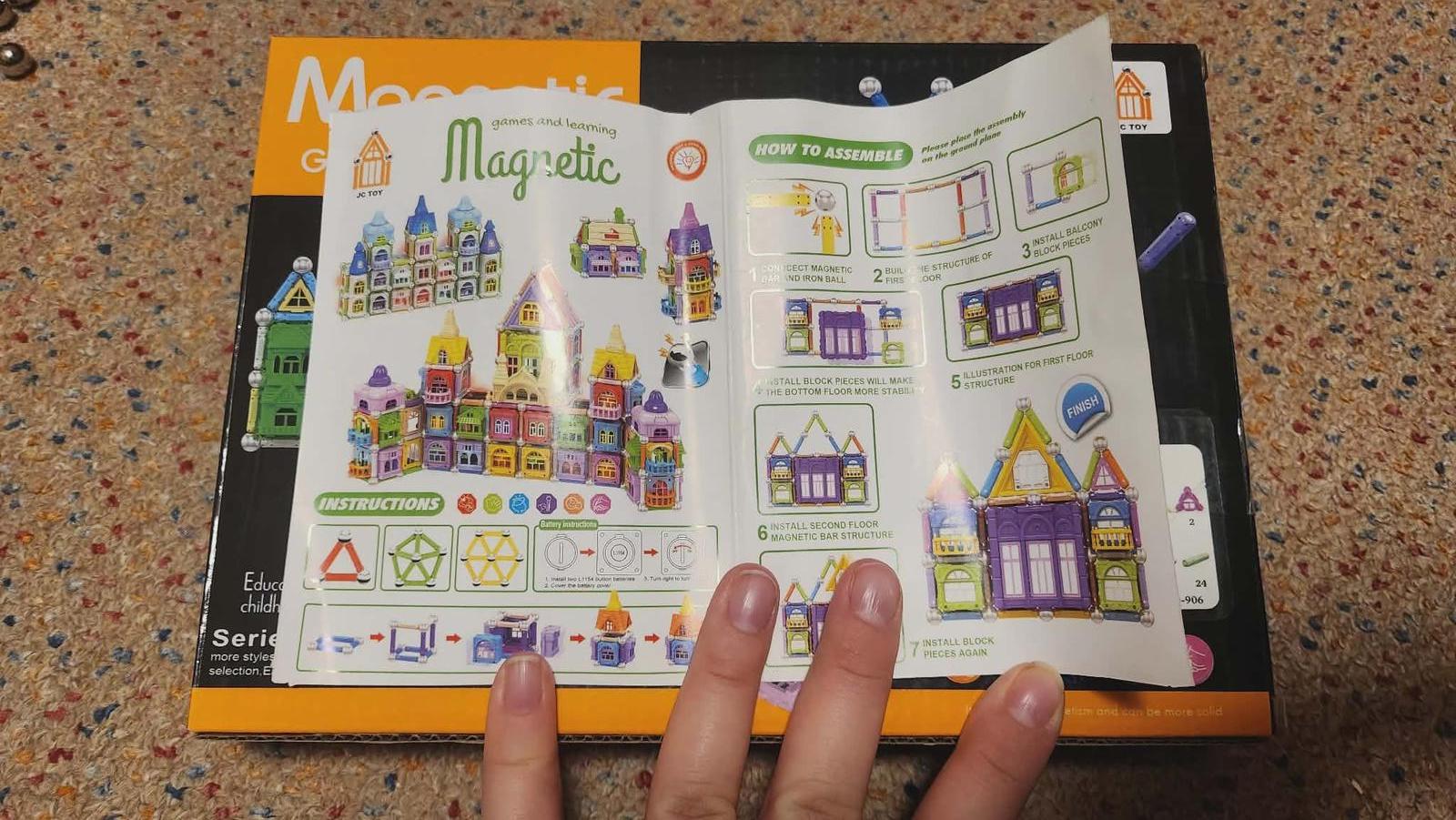 Magnetická stavebnica vo veľmi dobrom stave. U nás minimálne využívaná (deti oslovili iné hračky) a len leží na polici, čo je škoda. Obsah vyfotený, pretože nie úplne súhlasí s obsahom na krabici (tak to bolo od začiatku), ktorý ukazuje, čo všetko sa dá postaviť ak máte tých stavebníc viac. Magnetické tyčinky a guličky sú v plnom počte (po 24 ks). Ideálne ak máte doma aj iné magnetické stavebnice a touto si viete rozšíriť možnosti, čo stavať.