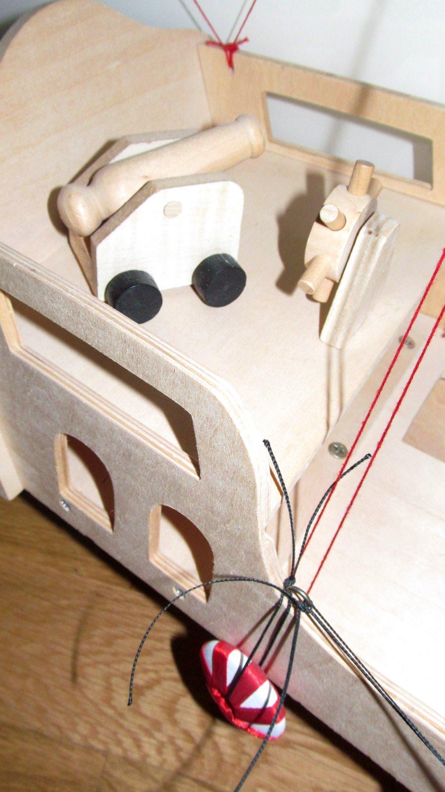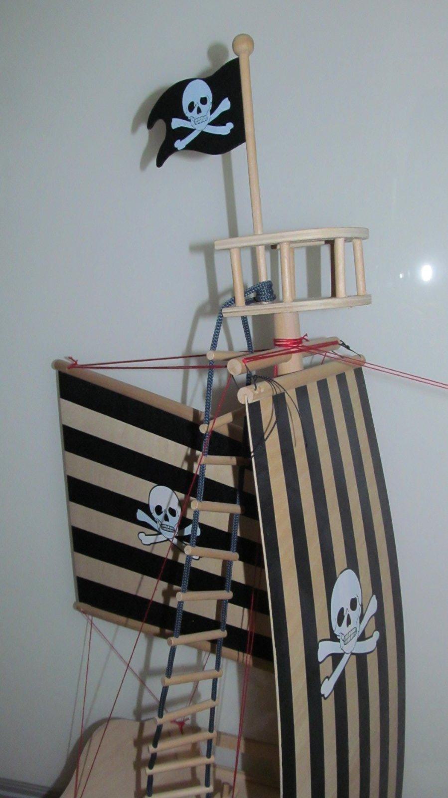 vyborny stav, bola len vystavena. Patri k nej aj delo na palube, a rebrik do podpalubia. Cela je z dreva, aj plachty su z viacvrstvej dyhy. Je mozne telo lode domalovat a dotvorit si ho farebne podla vlastnej predstavy. Telo lode ma na dlzku 56 cm + 28,5 spic vpredu. Zdarma pridam drevene postavicky, ktore boli kupovane samostatne. Predavam ako celok zmontovane, najlepsie osobny odber v Bratislave 4.