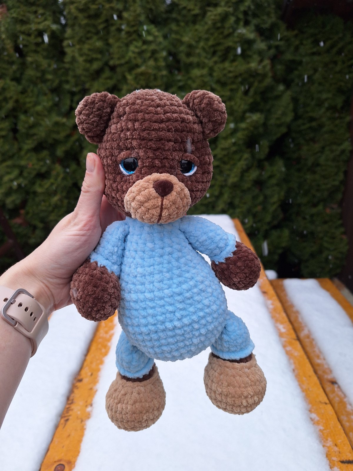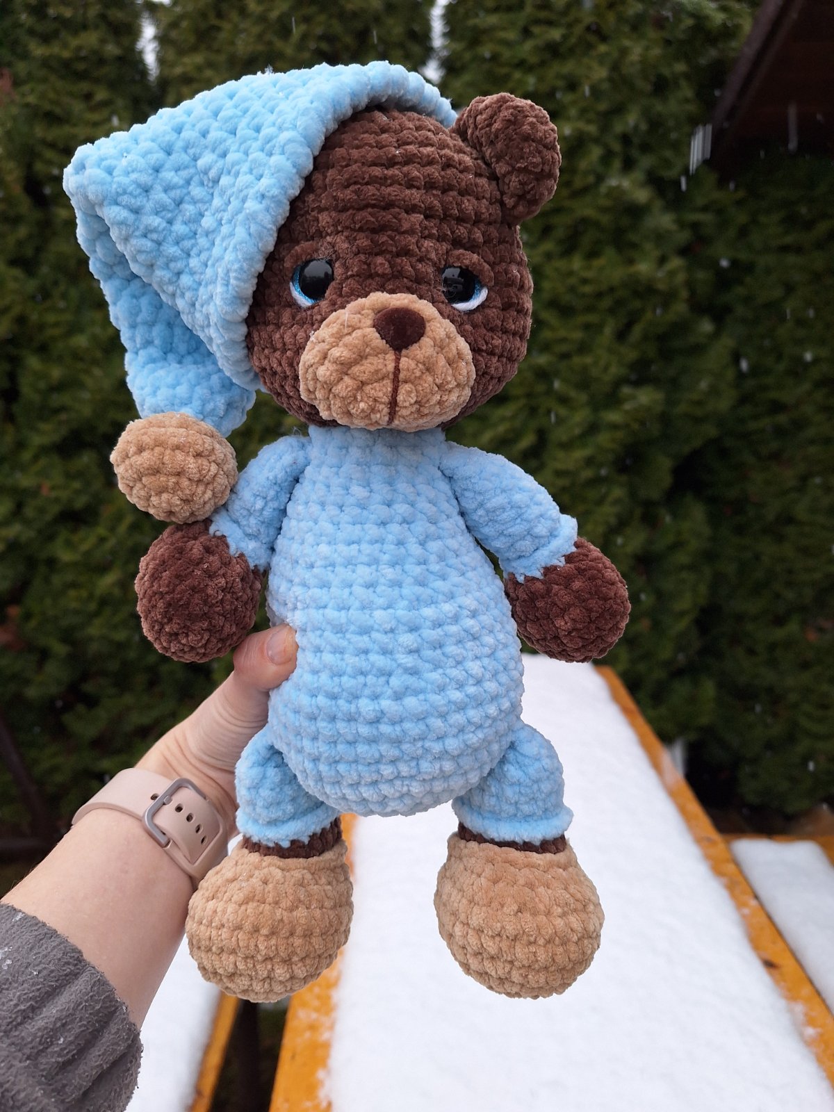 #hackovany_macko #handmade_hracka #rucnapraca #pre_babatko #macko_na_spanie #roztomily #hebučky #darcek_pre_dieta #hackovanie #uspavacik #modry_macik #hracka #33cm