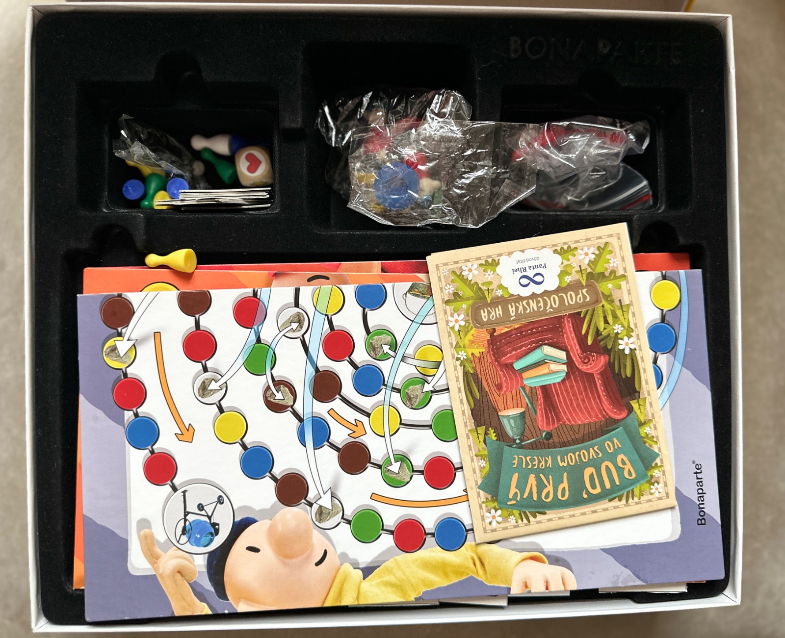 Obsahuje: 3 obojstranné hracie plány, 4 originálne postavičky Pata a Mata, hracie kocky, pexeso, kvarteto, domino, návod. Darujem k nákupu alebo samostatne 5 Eur.