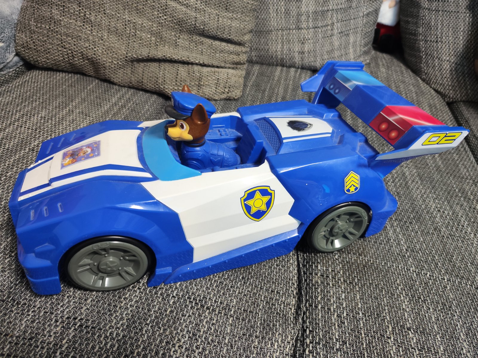 Predam velke Chase auto Labková patrola cca 47 cm dlhe. Malo hrane,bolo skor ulozene. Kolesa sa krutia, je vyrobený z odolného plastu, ktorý je zároveň veľmi ľahký. V otvorenej kabíne je trvalo pripevnená figúrka Chase. Miniatúra má otočnú hlavu.