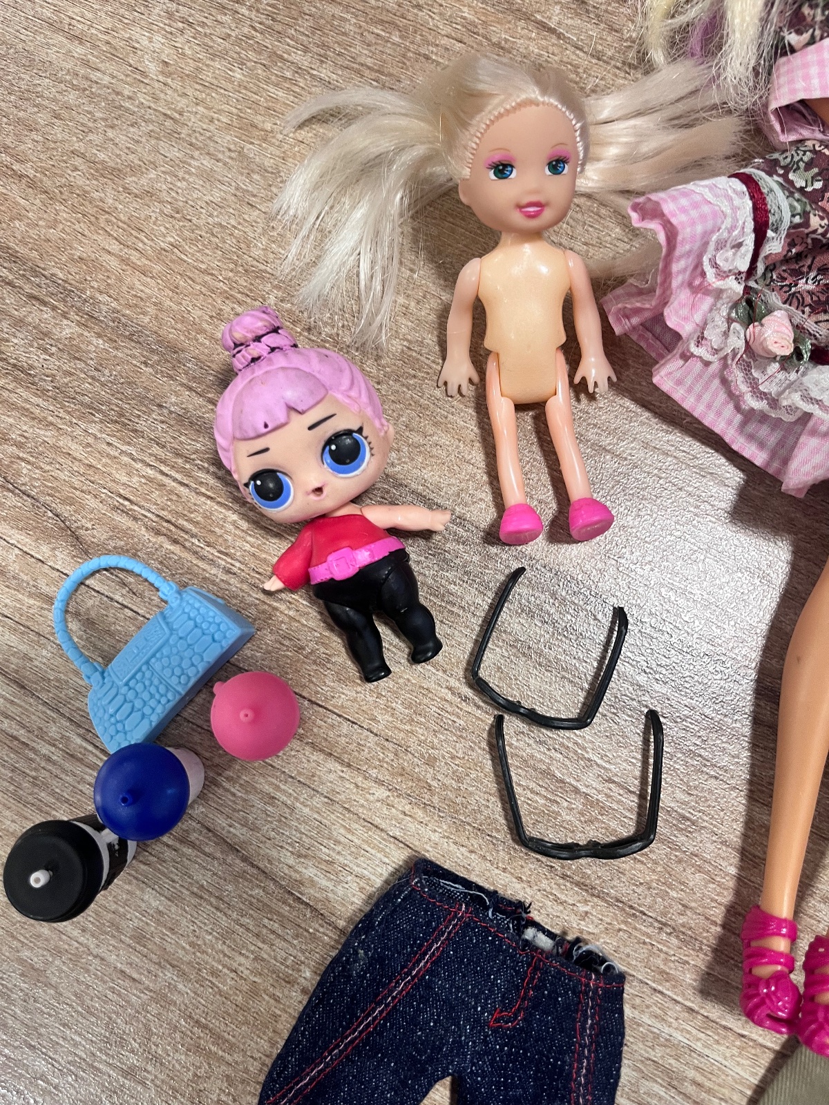 -kopec doplnkov, okuliare, stolík, nočník, polievačka, čelenky, oblečenie