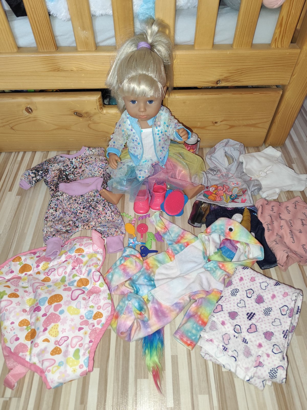 Posúvam malo hranu Bábiku Baby born.Je v perfektnom stave.Patri k tomu všetko čo je na fotke