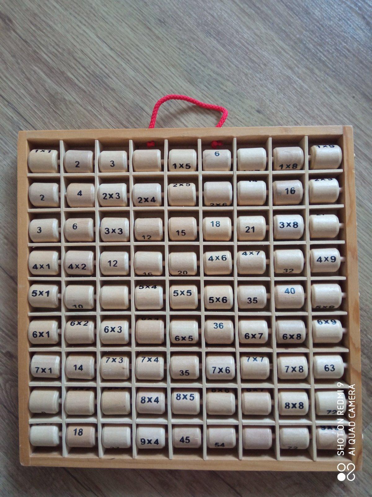 Výborná pomôcka na učenie násobilky. Valčeky sa otáčajú a buď vidno príklad alebo výsledok. Interaktívna pomôcka, vyrobené z dreva. Veľkosť 28x28cm.