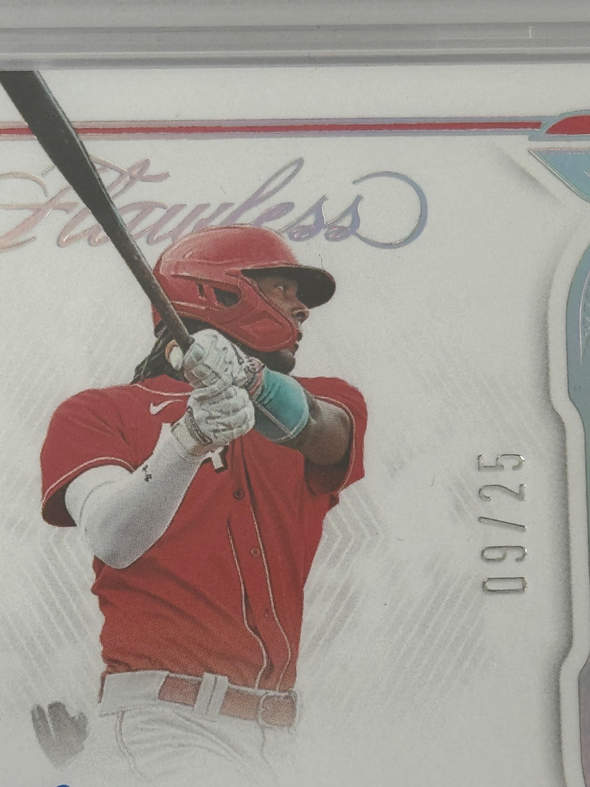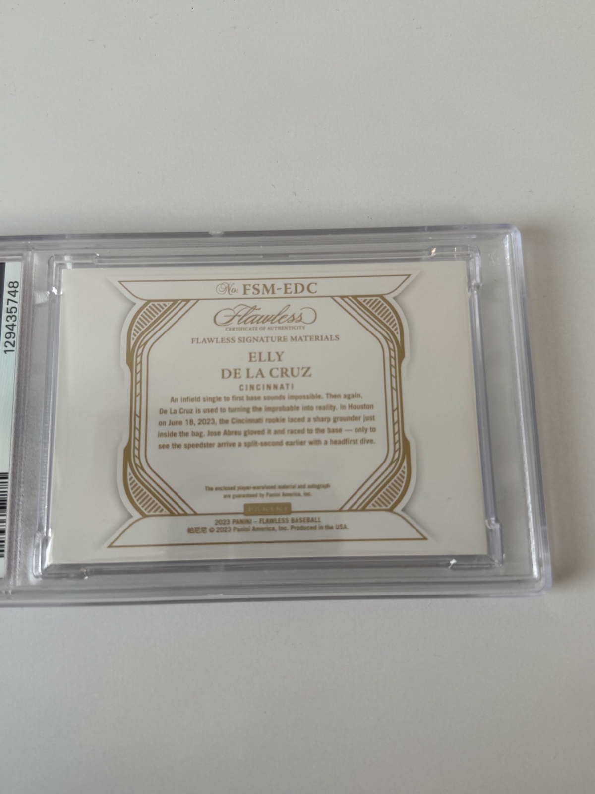 Zberatelska baseballova karticka Panini Flawless signature materials Elly De La Cruz 09/25 s kuskom dresu PSA