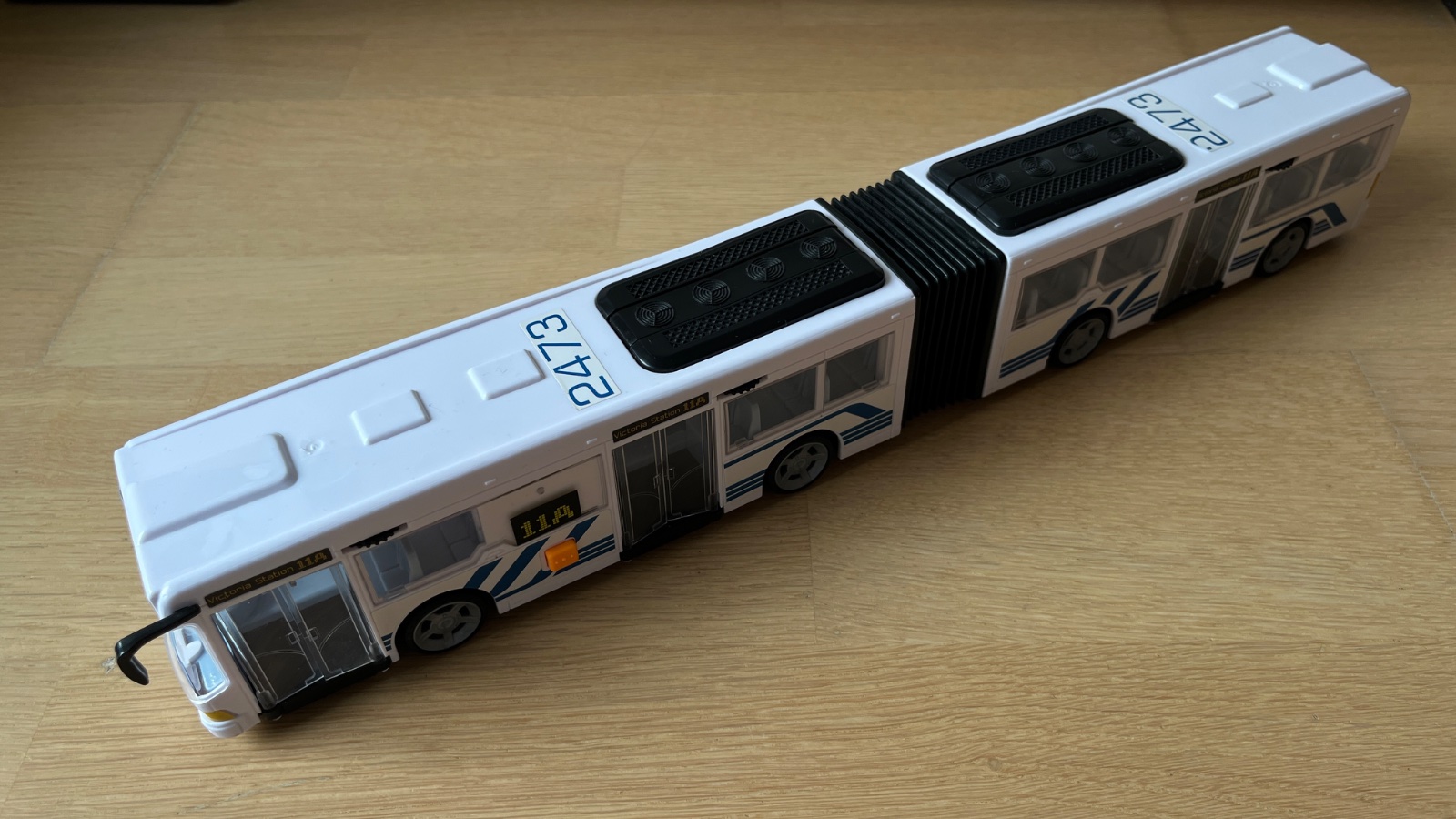 Autobus - harmonika dlhý 45 cm so zvukmi vrčania motora a s osvietením čísla “linky”. Dvere sa dajú otvárať.