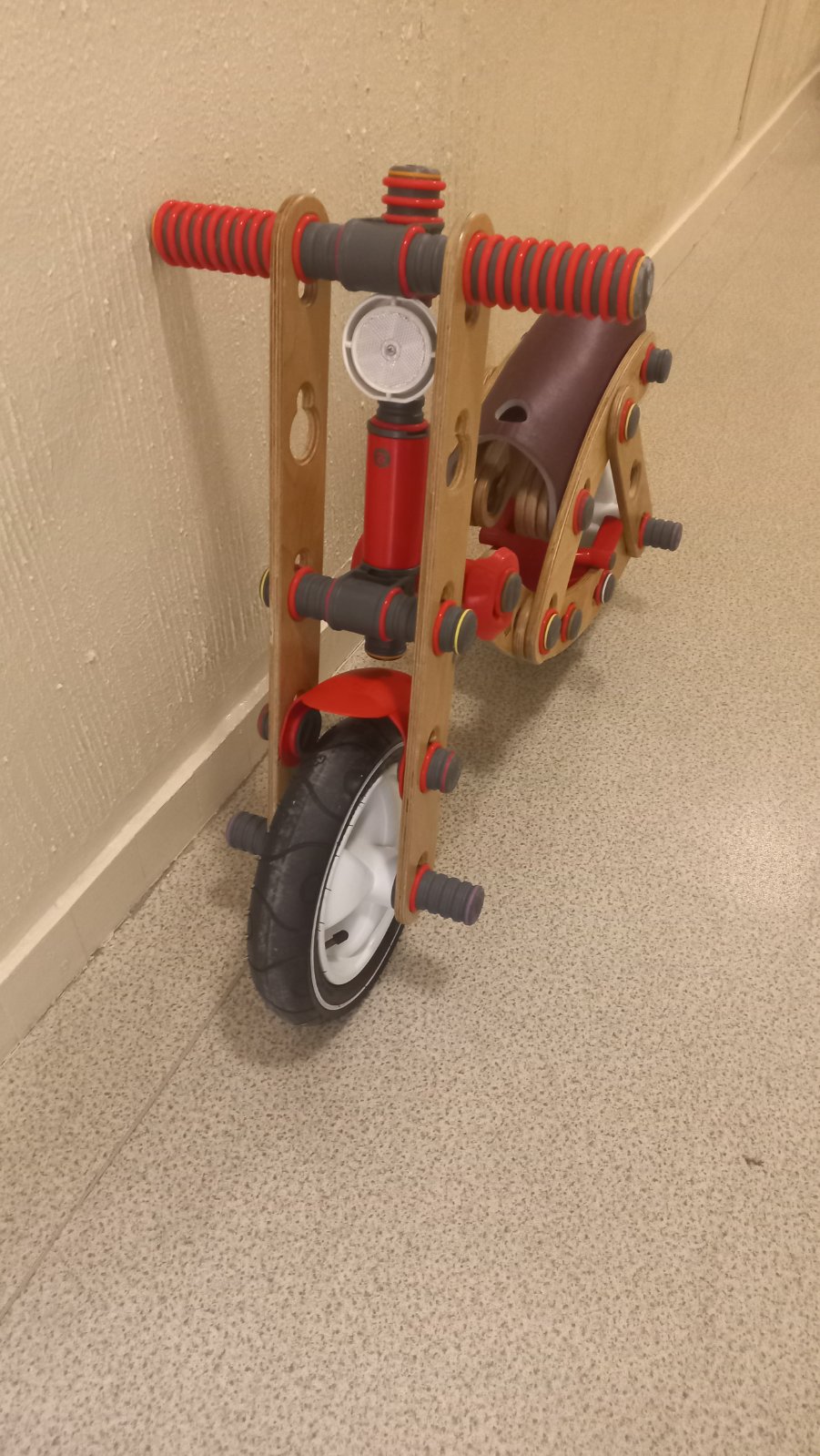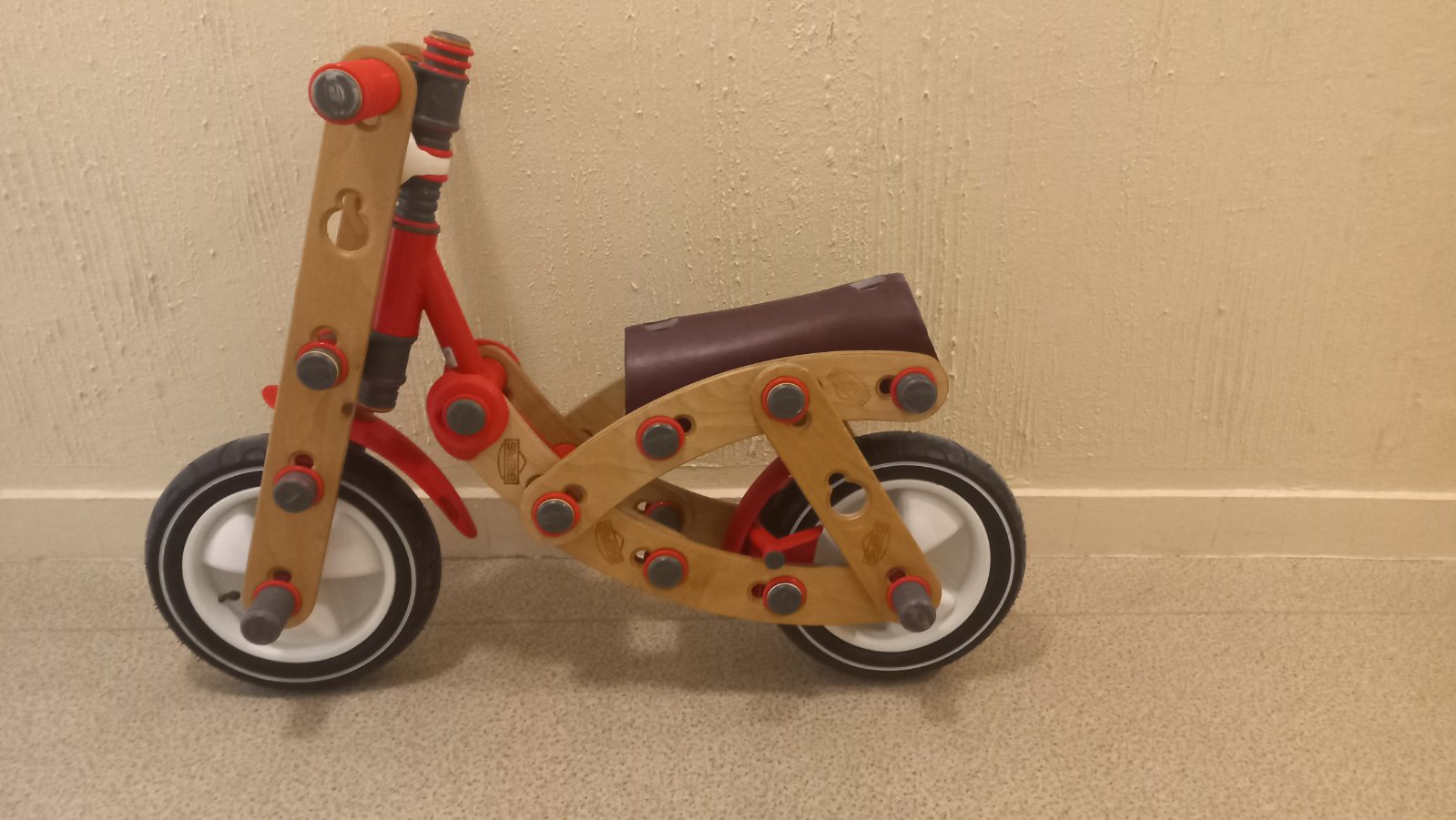 Stavebnice starter kit umožňuje zostavenie 3 hraciek (resp.funkcneho odrazadla, smezneho skutru a hracky zeriav podla navodu (a vela dalsich podla fantazie dietata) Moov bike - skvelá motorka/odrá...