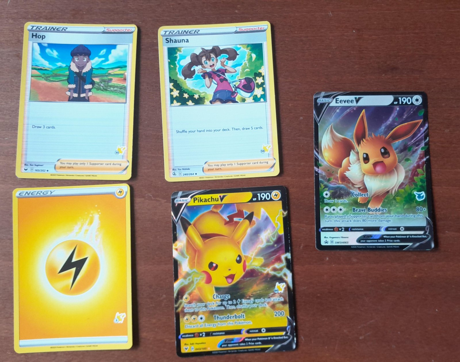 - 3 sady kariet (Cinderace, Pikachu a Eevee)