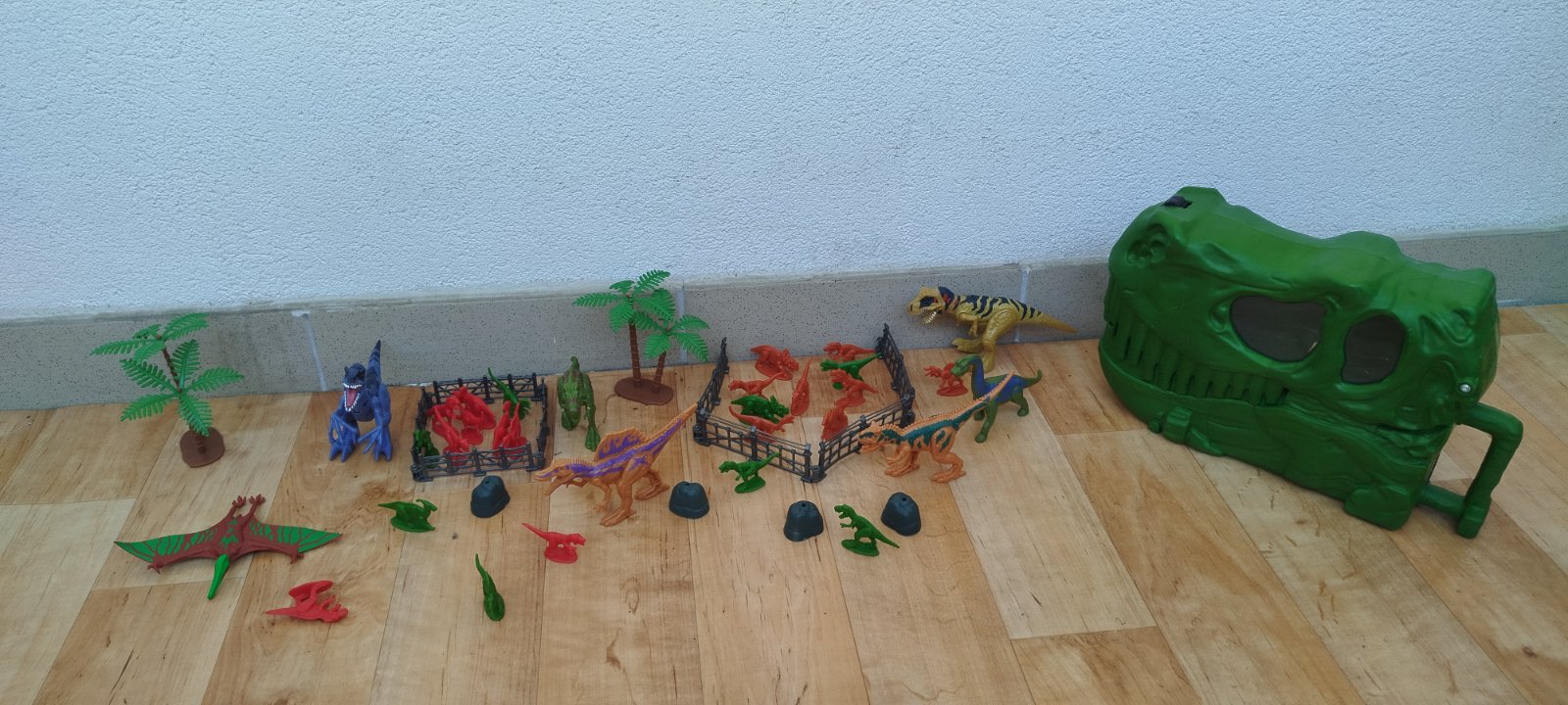 Sada sa sklada zo 45 kusov.Prakticky kufrik v podobe hlavy TRexa,da sa uzatvorit.Bezne znamky pouzivania.Povodna cena bola 12 €.