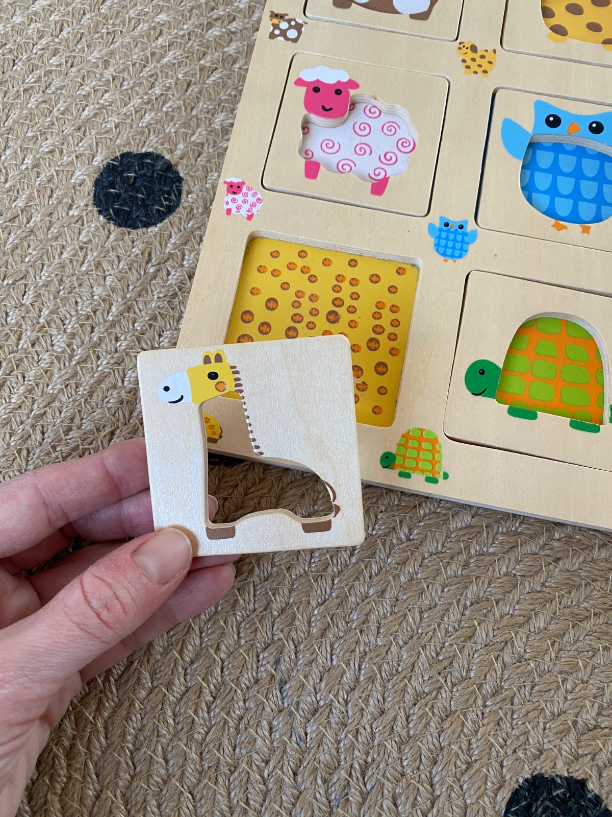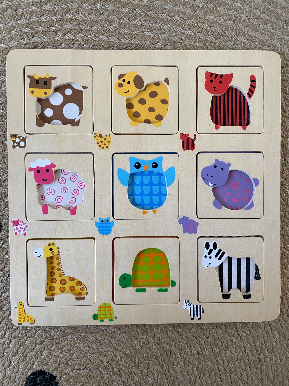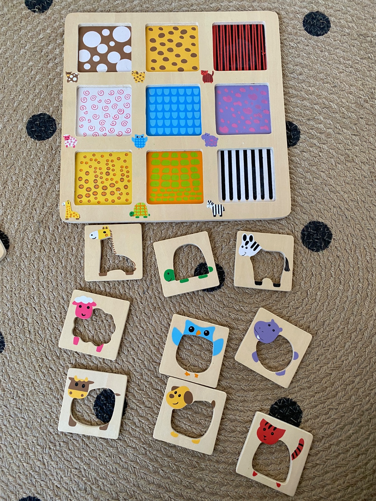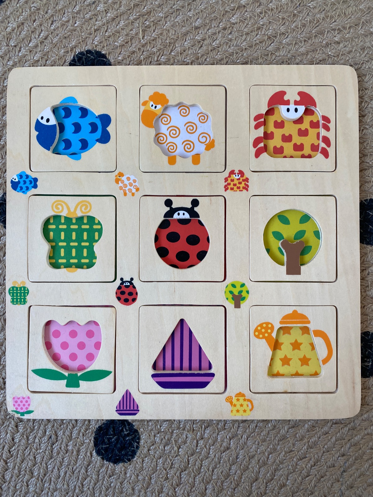 Predám drevenú vkladačku, kde sa dieťatko riadi vzormi vo výreze. Po vložení vznikne obrázok zvieratka, predmetov. Veľmi pekné spracovanie.