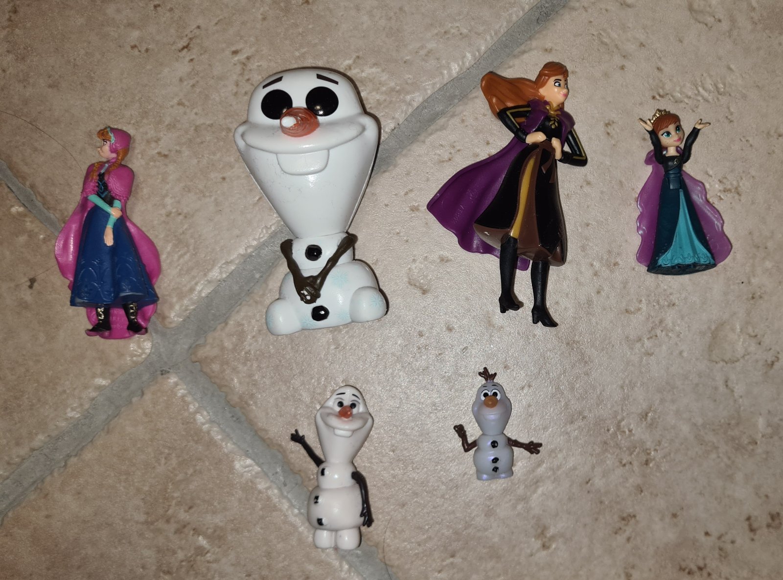 Snehuliaci dvaja väčší majú ulomenú halúzku na hlave môžu mať mierne stopy ošúchania farby. Maličký Olaf je bez vady a známok používania a má takú zvláštnu bielo perleťovú farbu.