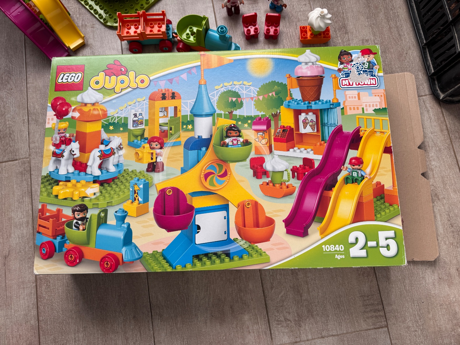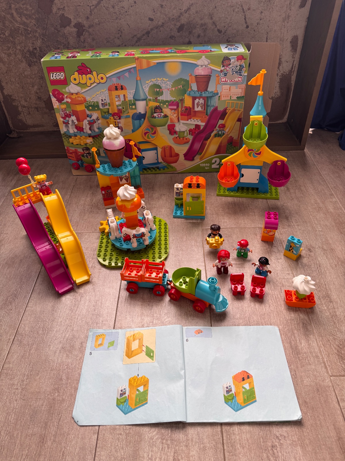Lego duplo kolotoce. Aj s krabicou a návodom. Nič nechýba. Na návode je vidno pouzivanie, je opotrebovany, ale kompletný.