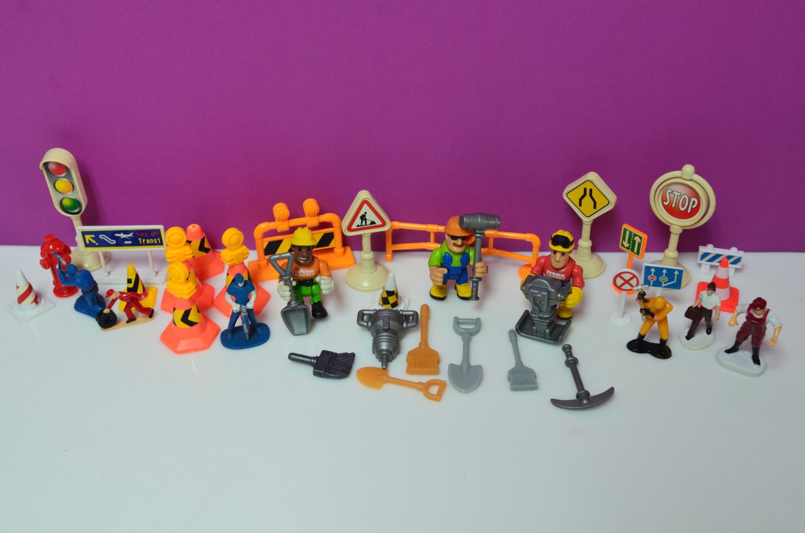 Predám tieto hrané figúrky, staršie dopravné značky, náradie ...ako na foto.