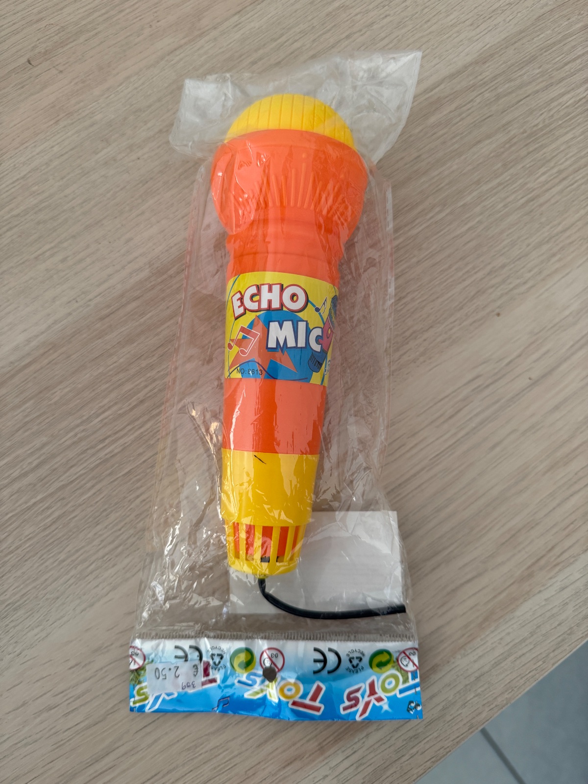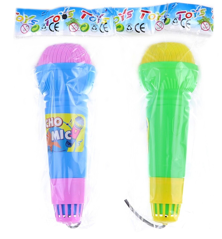 Plastový hračkarský mikrofón bez efektov.