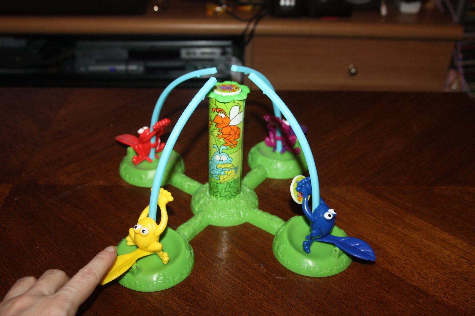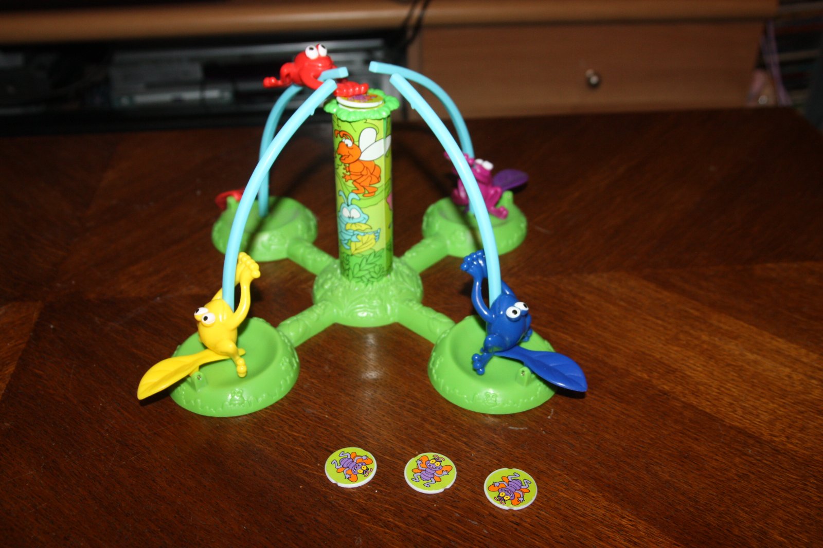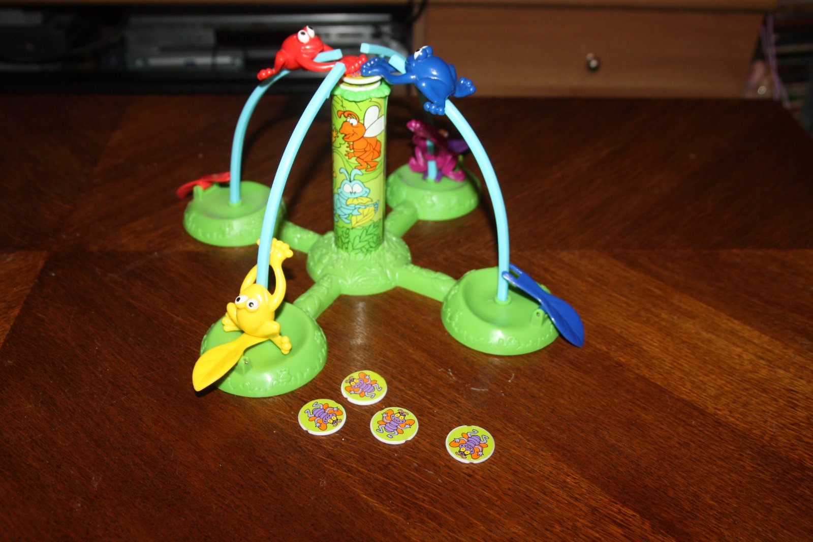 Klikajte na lístok aby žabka čo najvyššie vyskočila a ulovila najviac mušiek. (Žabky majú magnety pomocou ktorých sa na ne chytajú žetóny múch )