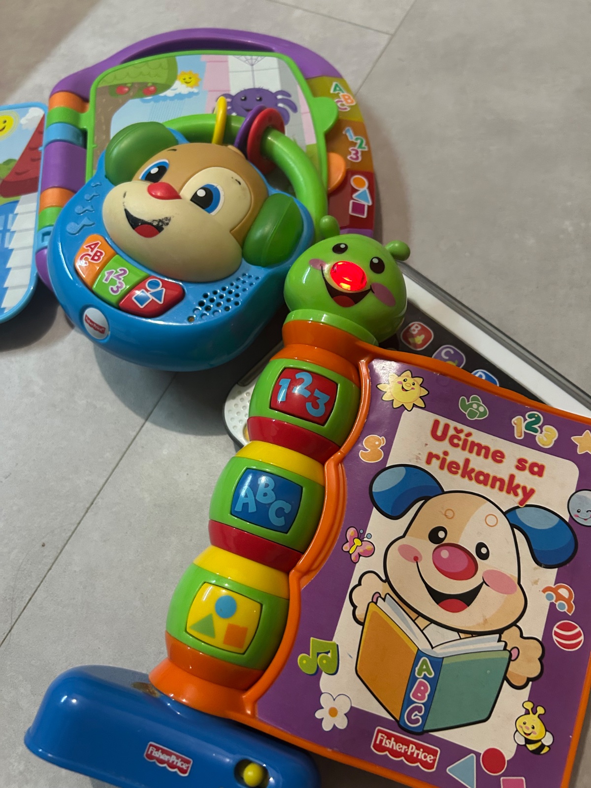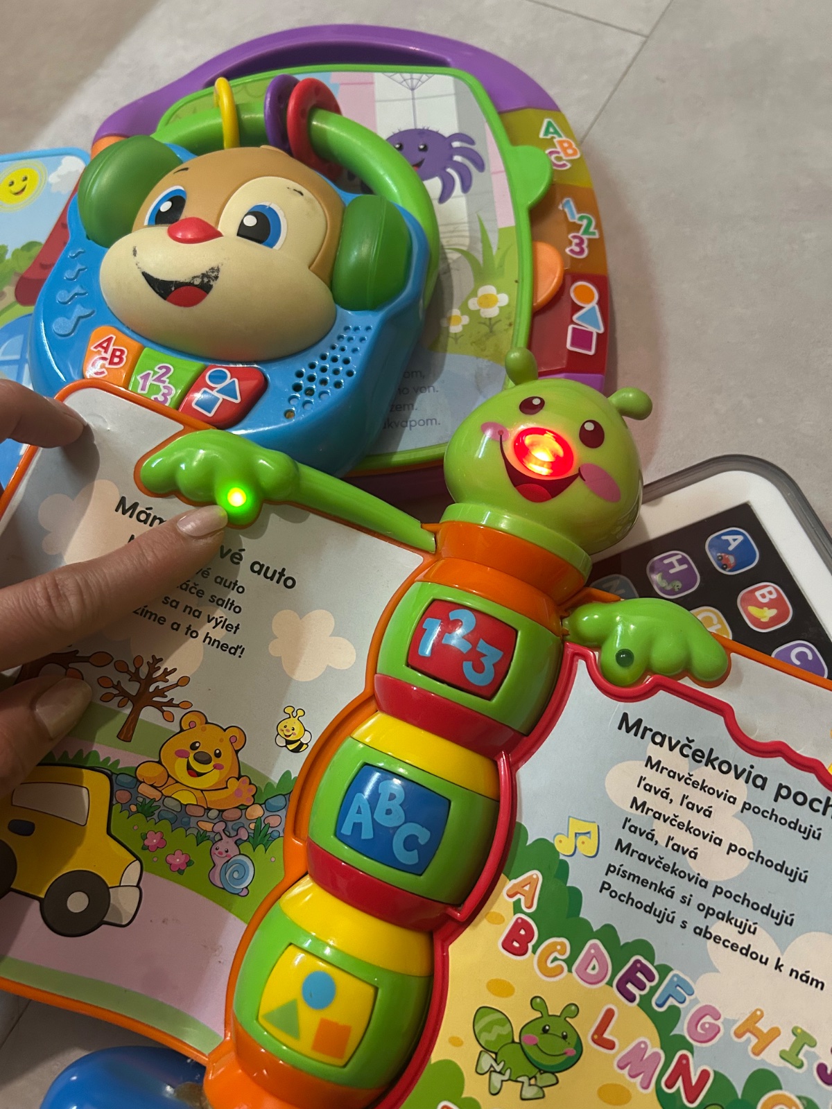 Interaktivne - hraju pesnicky, basnicky, pismena, čísla, hudba, svietia, blikaju👌☺️ ako nove, malo hrane.