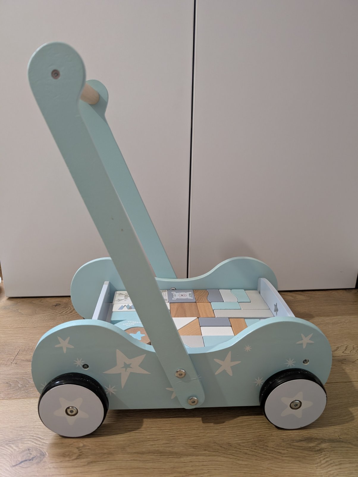 Dreveny vozik s kockami