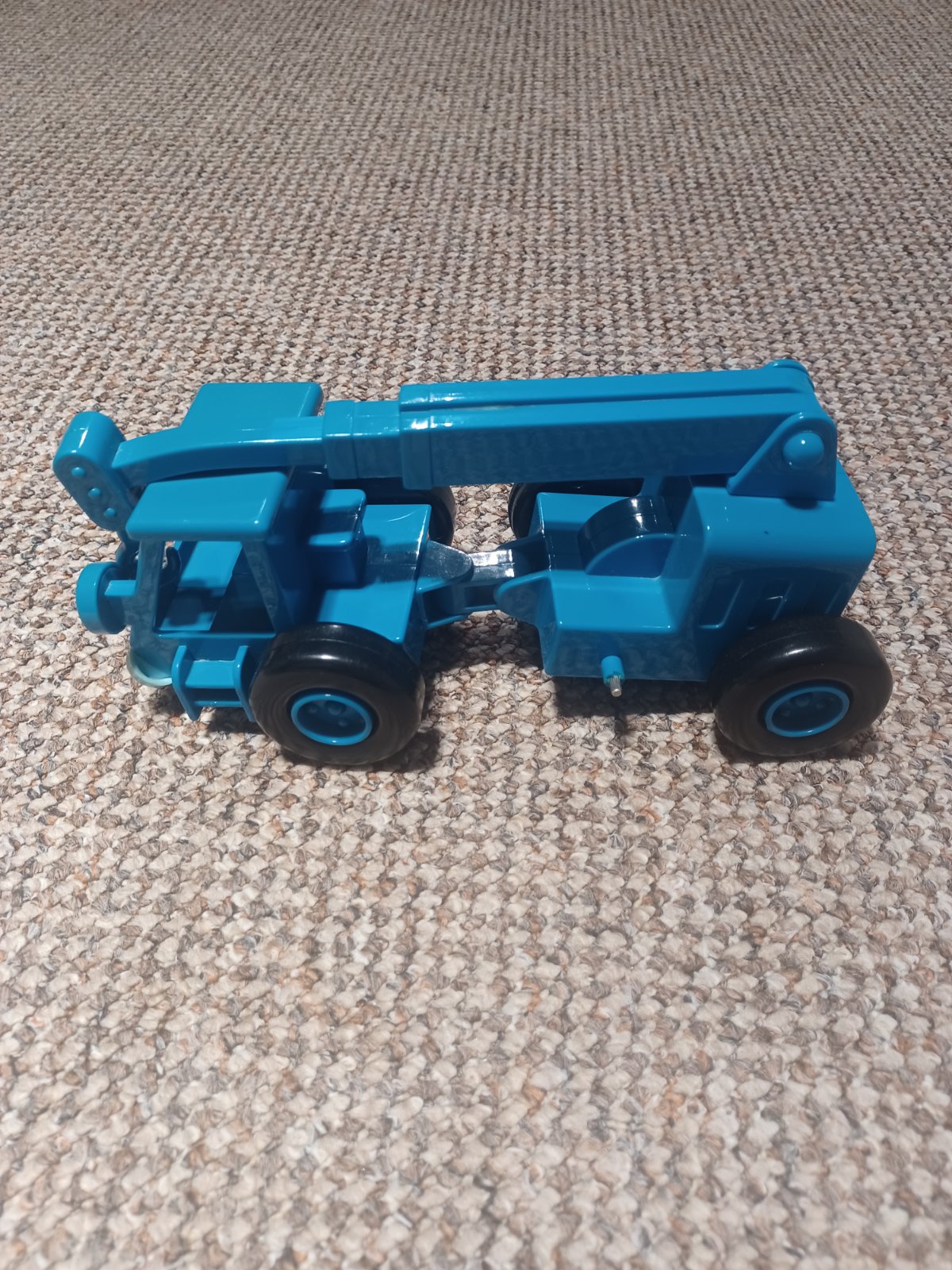 Predám žeriav z rozprávky Bob staviteľ. Dĺźka 21 cm. Je funkčný, ale chýba mu 1 koleso.