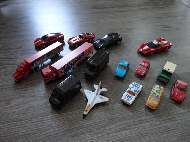 Predám AUTÁ – angličáky (8 ks + lietadlo + 2 kamióny) aj autá na zotrvačník (dl. – 10 cm, nové).
