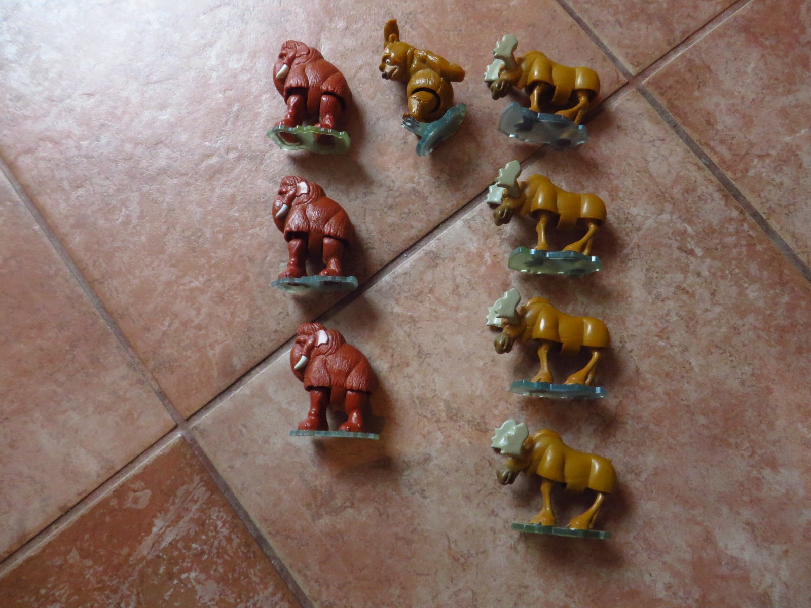 Predám týchto pár figúrok zvierat - 4x sob, 3x mamut a 1x medveď. Zvieratká keď stoja, tak sa mierne pohybujú. Majú pohyblivé kĺby na končatinách. Veľkosť je približne 4-5 cm na dĺžku, a výška cca 4cm. Syn sa s nimi vedel pekne prehrať. Cena za všetky 1,50€.