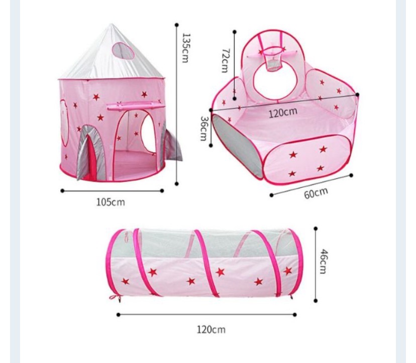 Nepoužívaný detsky stan , Tento stan sa skladá z troch častí, ktoré možno zostaviť dohromady a vytvoriť tak kompaktný priestor na hranie, alebo ich možno použiť samostatne a vytvoriť tak prispôsobený priestor na hranie, ktorý dokonale vyhovuje potrebám vášho dieťaťa.