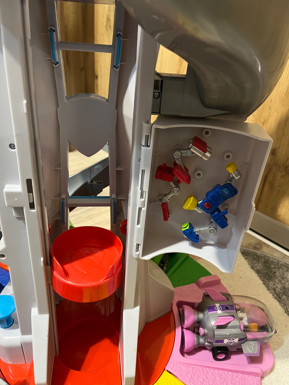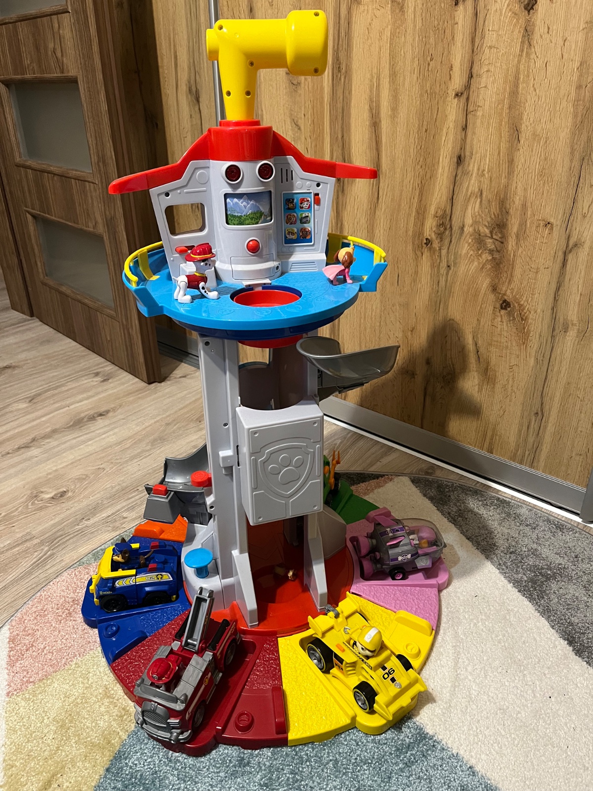 Predám vysokú pozorovaciu vežu Paw Patrol s autíčkami a psíkmi, veľmi dobrý stav,málinko hraná, výťah sa pohybuje. Cena 60 €.