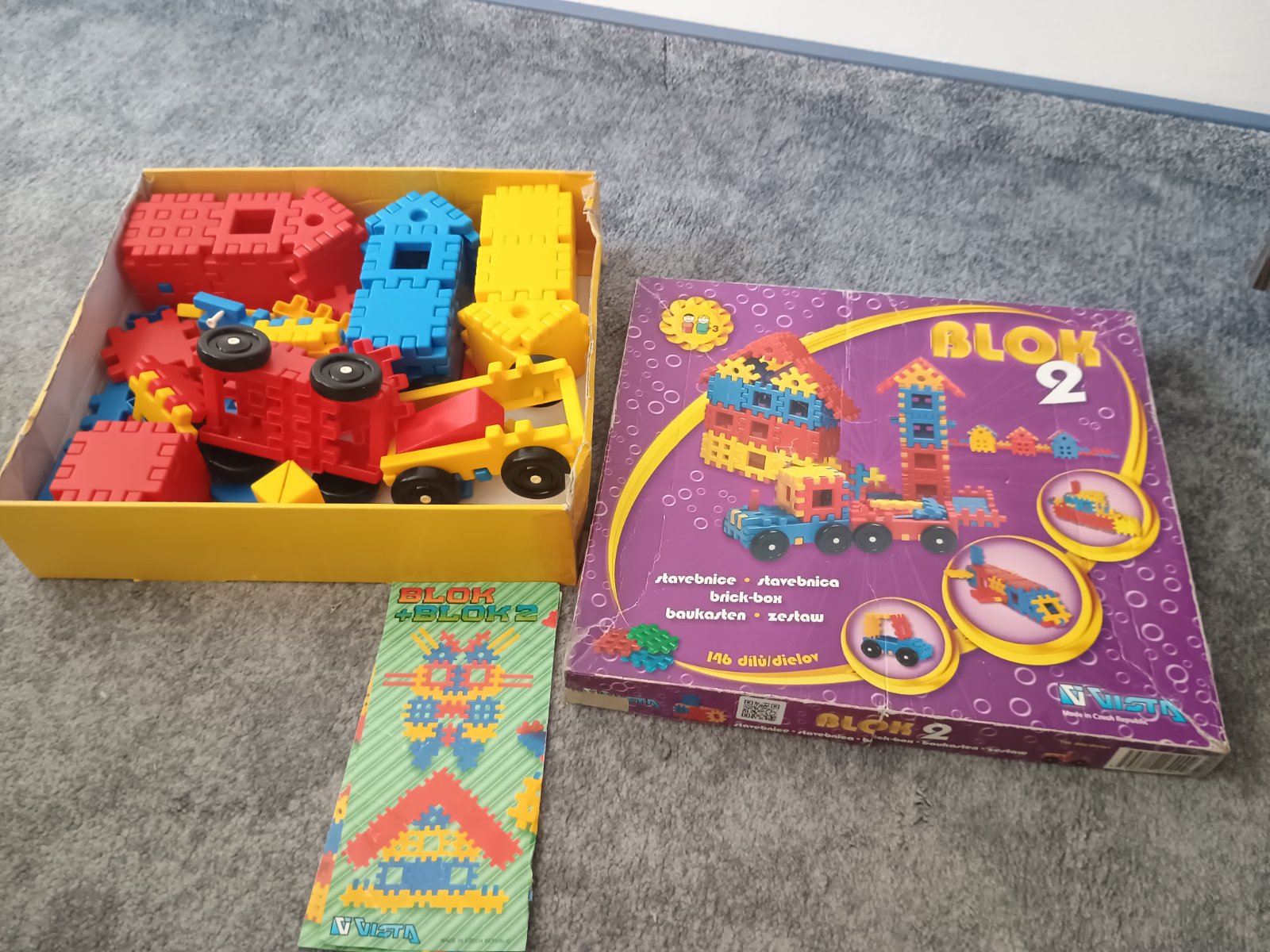 Na predaj velmi dobra stavebnica. Krabica je uz viac ponicena, ale stavebnica je v poriadku. Prilozeny je aj navod na rozne stavby, vozidla a lietadla. Da sa stavat aj podla vlastnej fantazie.