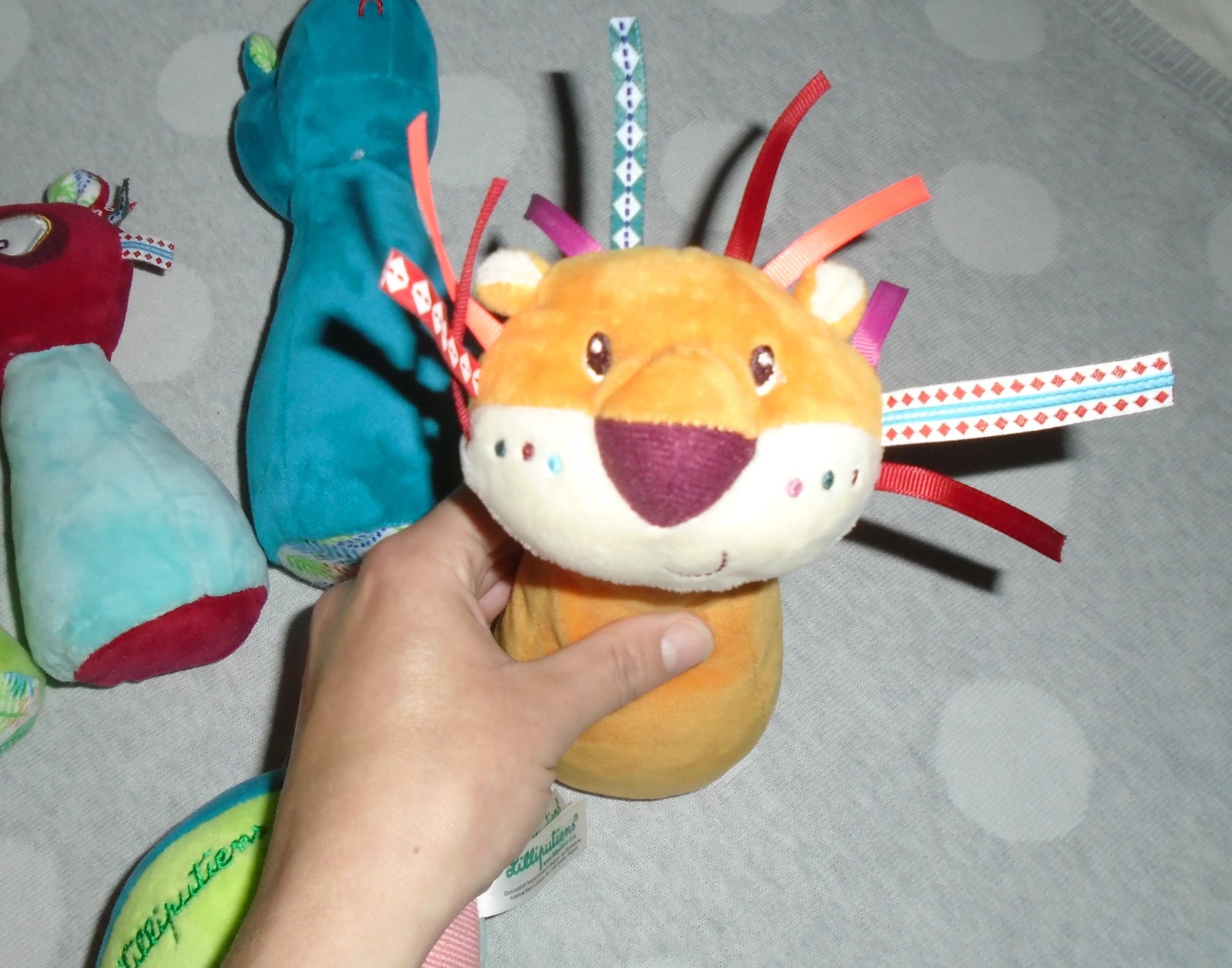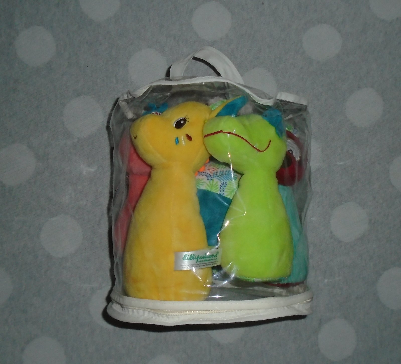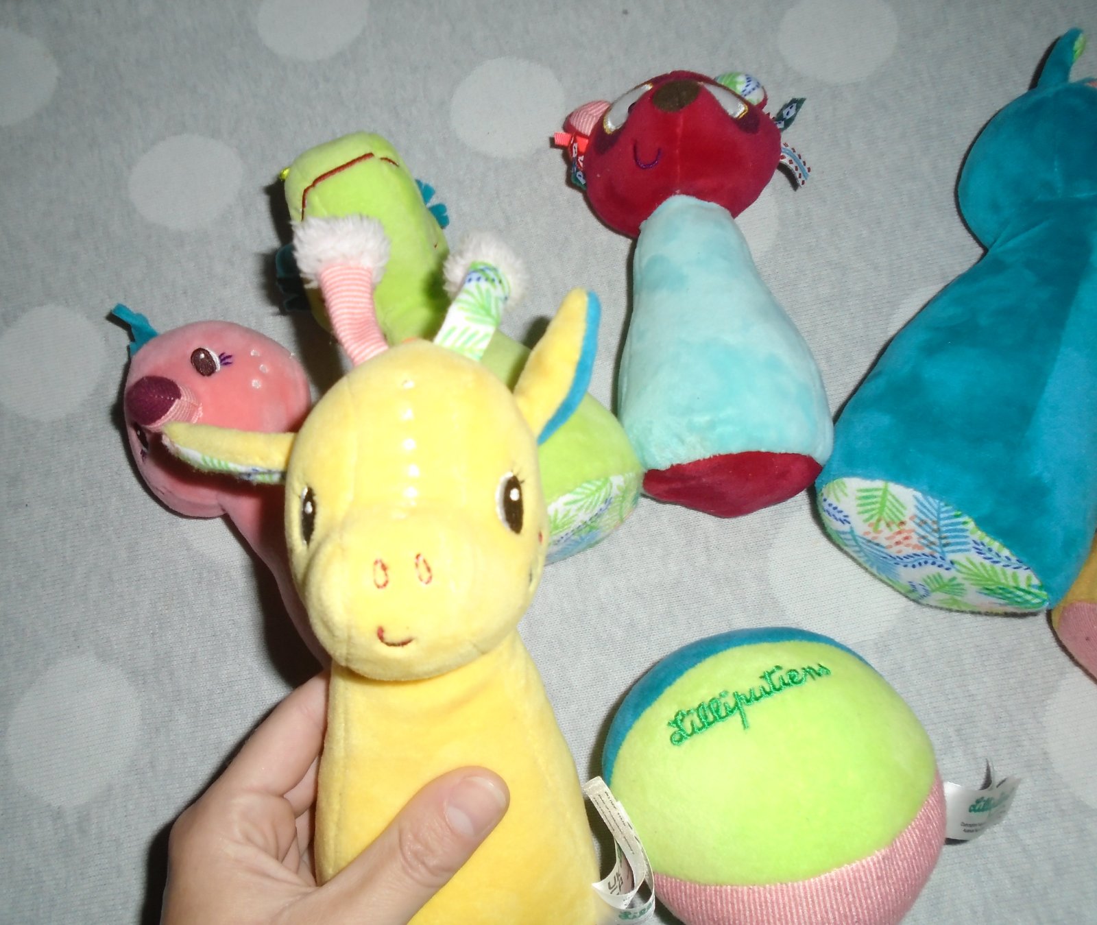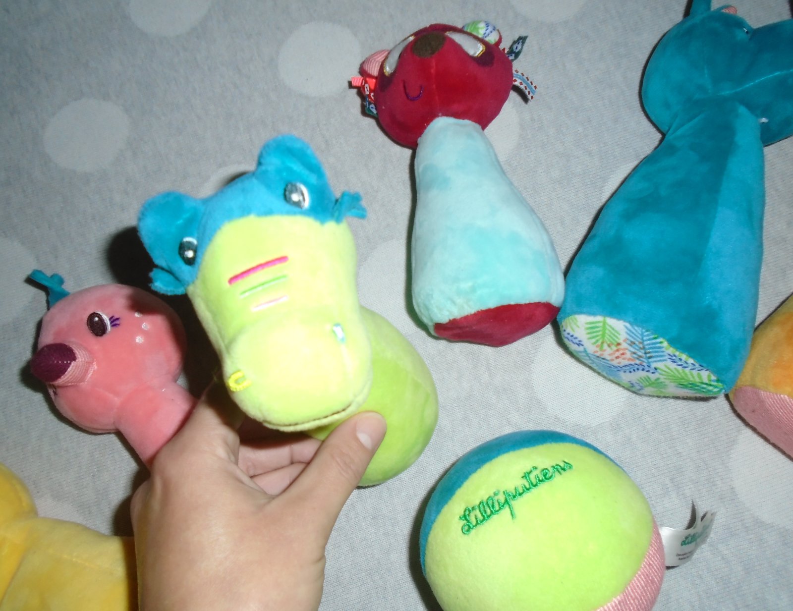 Zvieratká sú plyšové, rovnako ako bowlingová guľa, ktorá má v sebe navyše ešte hrkálkový prvok.