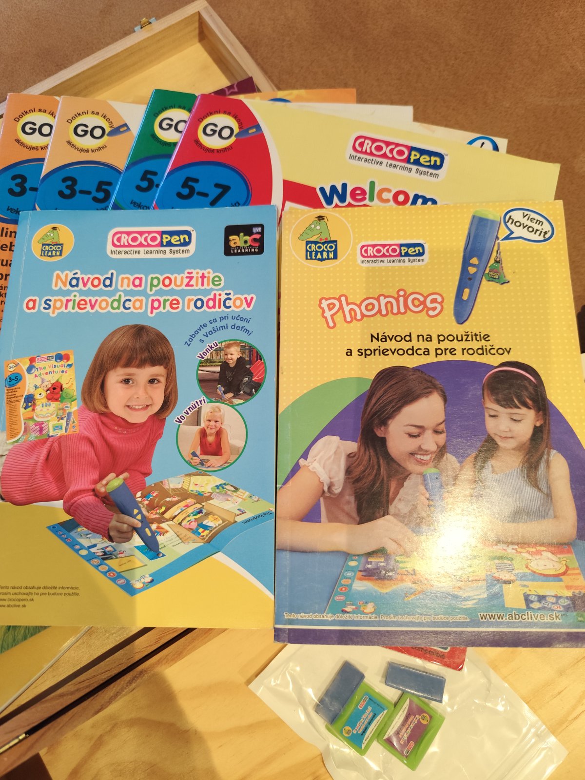 CROCO Pero je systém výučby cudzích jazykov pre deti od troch rokov. Je to elektronické pero, ktoré po jednoduchom dotyku s knihou dokáže prečítať nahlas všetky texty alebo samostatne slovíčka, ktoré sú obsahom kníh. Vety aj jednotlivé slovíčka Vám prečíta v anglickom alebo v slovenskom jazyku.