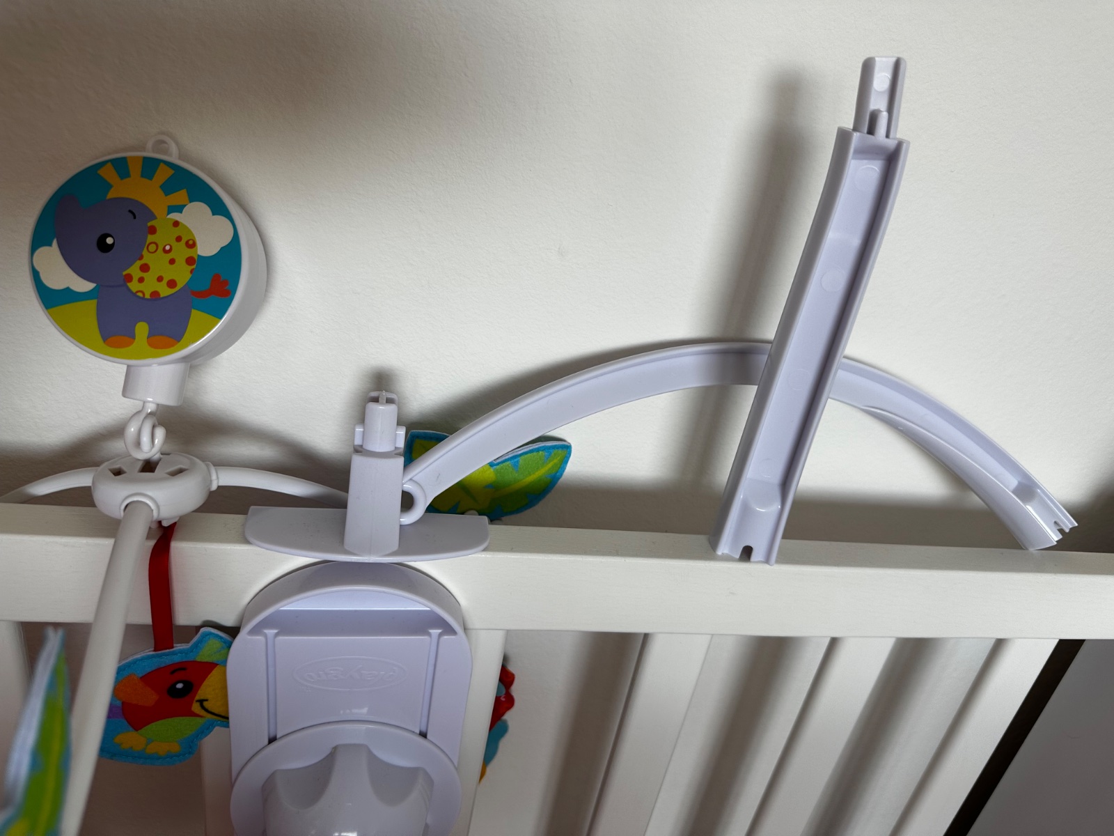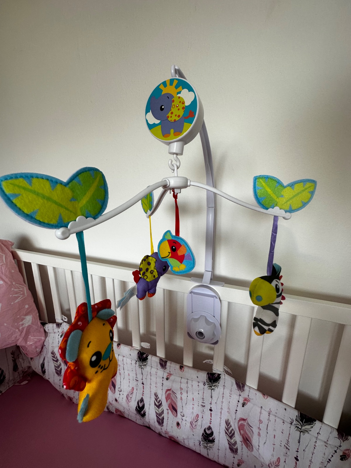 Biely hudobný kolotoč s farebnými figúrkami zvieratiek sa jednoducho inštaluje na detskú postieľku. Roztomilé zvieratká a jemné zvuky hracej skrinky utíšia vášho drobca. Kolotoč vplýva na rozvoj zmyslu sluchu, zraku a vnímania.