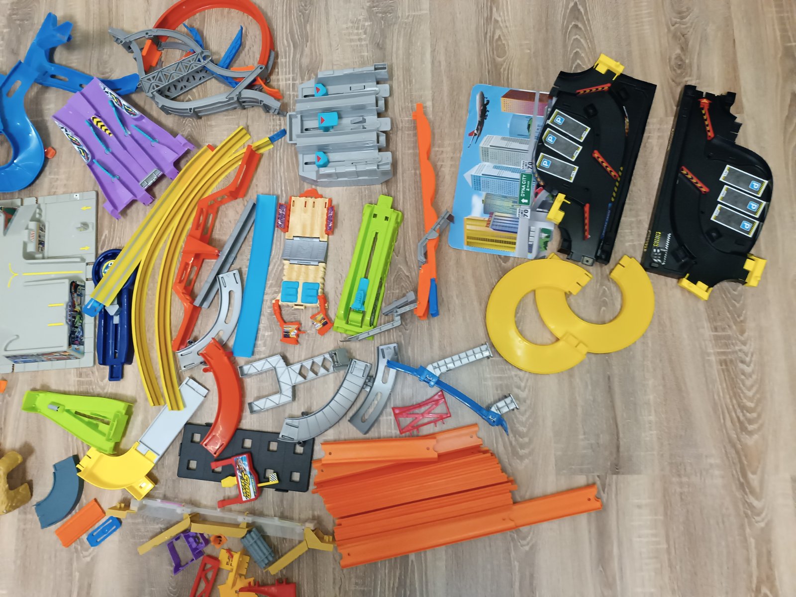 Sada Hot wheels zložená z mnohých komponentov. Možné inštalovať aj na stenu viď obrázok