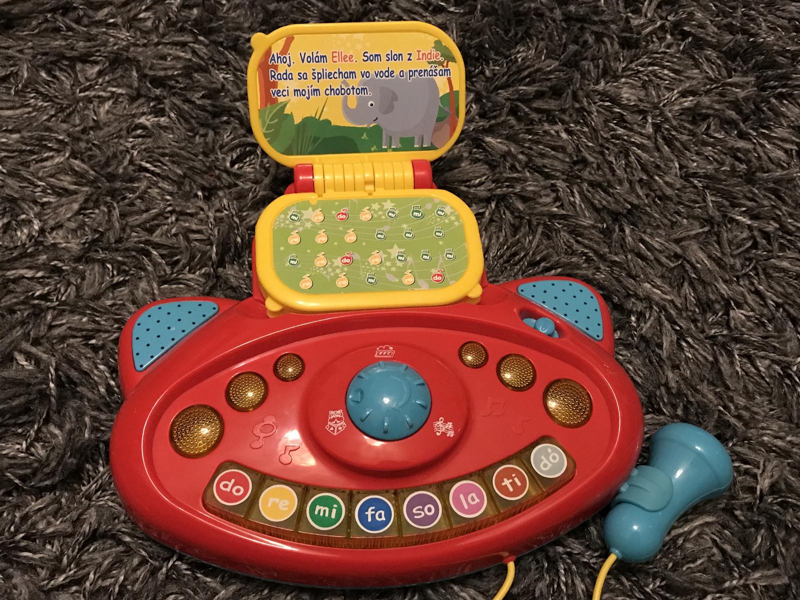 Hudobný hovoriaci klavír v top stave, malo hra e. Rozpráva po slovensky. Hovorí rozprávky, spieva, dieťatko spoznáva noty a melódie. Môže spievať aj do mikrofónu. 10 eur
