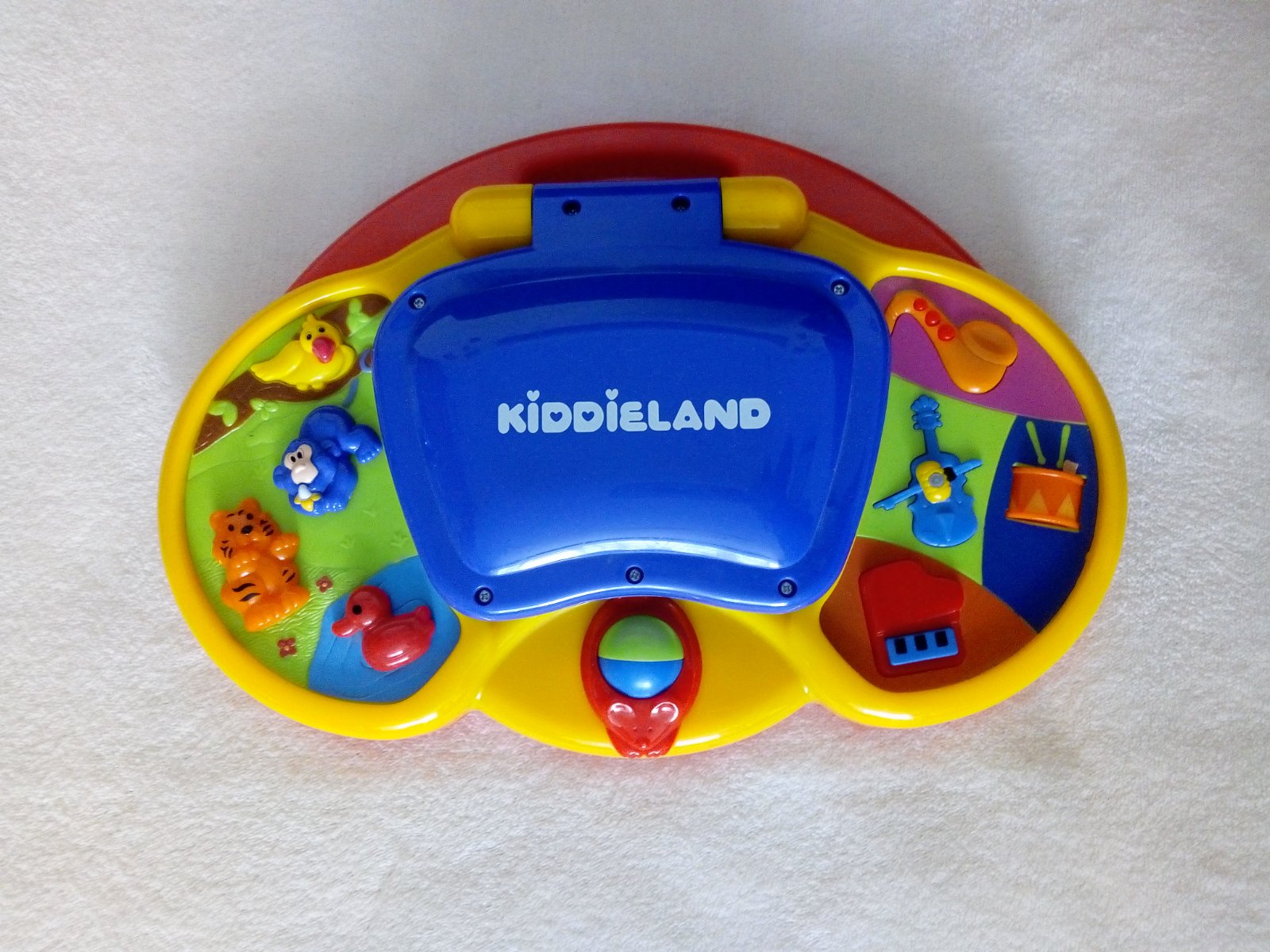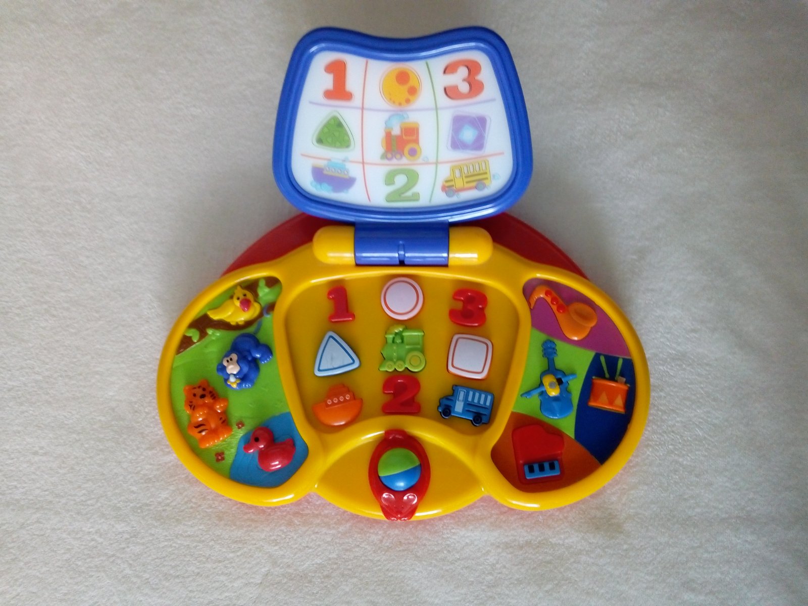 Detská zvuková hračka-prvý notebook.Po stlačení zvieratká ,hud.nástrojov,doprav.prostriedkov,čísel,geomet.pomôcok vydáva zvuky danej veci.V peknom zachovalom,funkčnom stave.