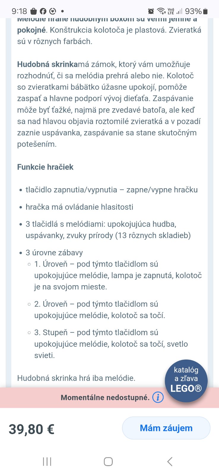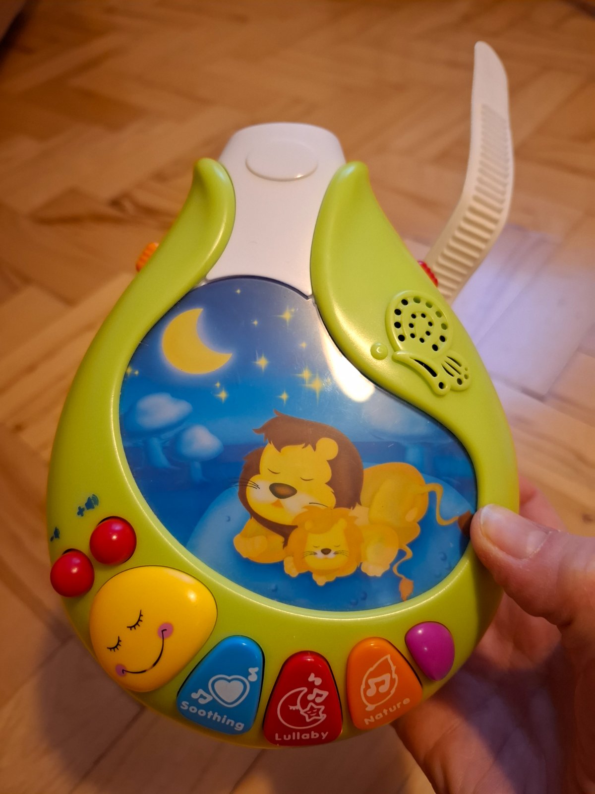 Predám kolotoč nad postieľku. Časť s hudbou a svetlom sme využili aj neskôr. Je vo veľmi dobrom stave, žiadne škrabance ani iné kazy. Svetlo a hudba stále fungujú. Veľkou výhodou je, že zvuk sa dá buď stíšiť alebo pridať.