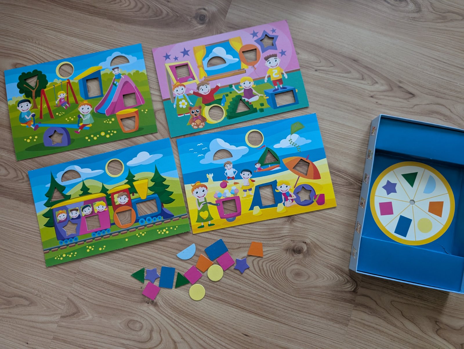 Obsah balenia: 4 tematické podložky (pláž, vlak, detská izba, ihrisko), spinner, návod s návrhmi hier.