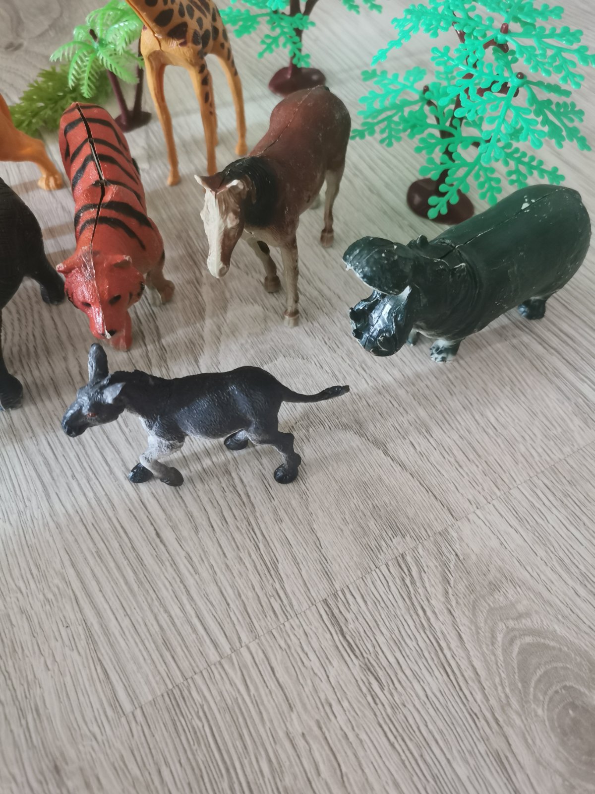 Sada zvieratiek a pár zelene. Spolu 8 zvierat a 4 zelene. Strom je len 1ks.V