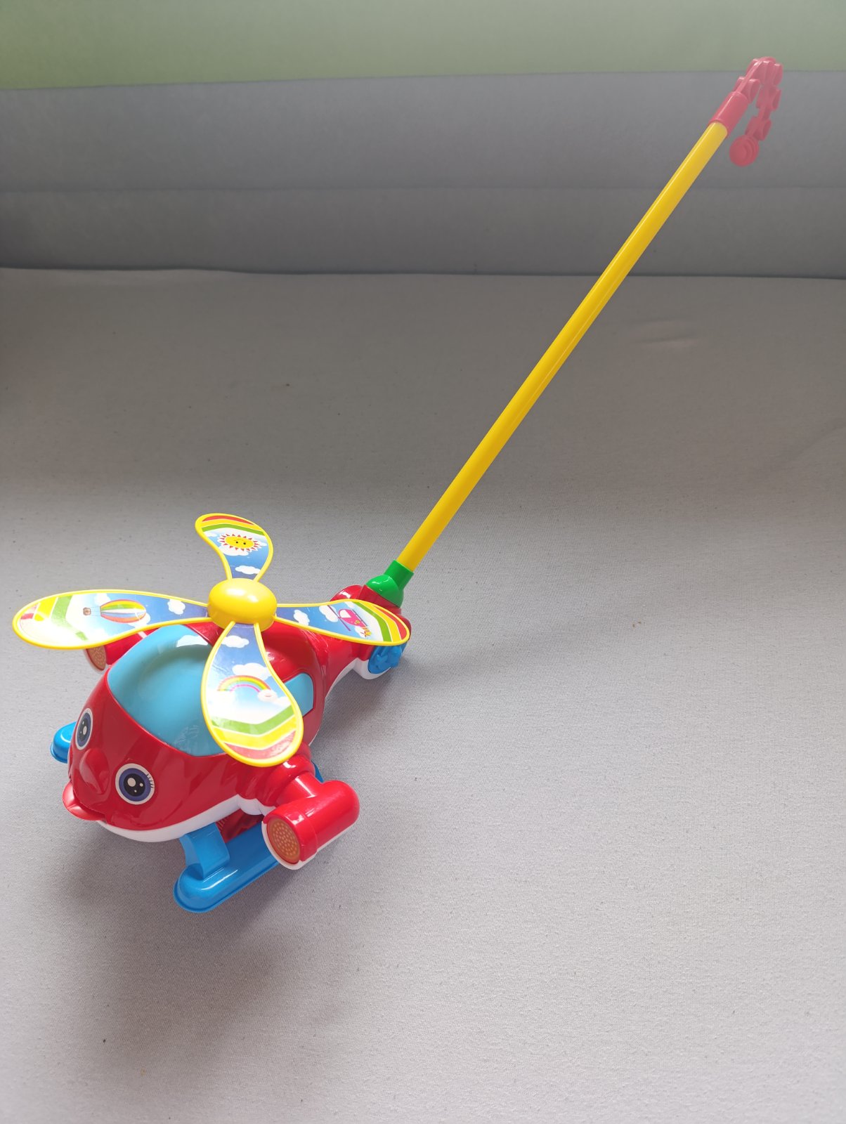 Vrtuľník pri tlačení zvoní a vystrkuje jazyk. Palička je odnímateľná. Minimálne používané.