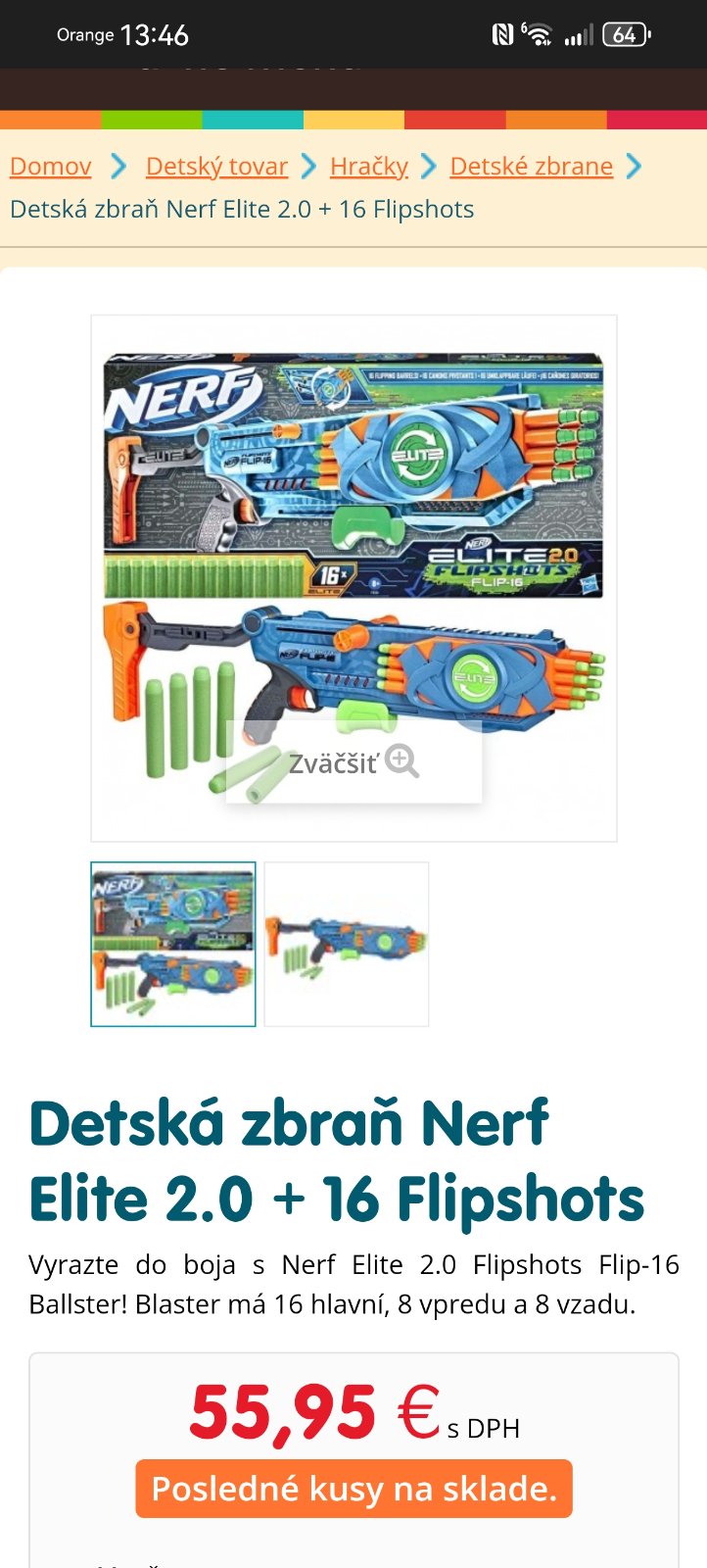 Predam malo hranu Nerf zbran aj s dokupenymi nabojmi. Plne funkcna bez chyby. Povodna cena, vyse 50€. Cena i s obyčajnou poštou.