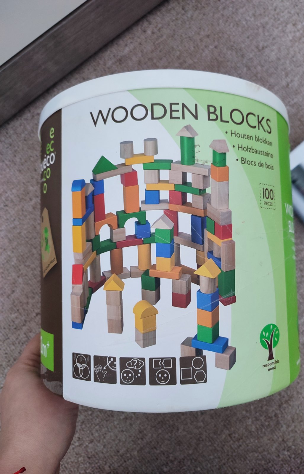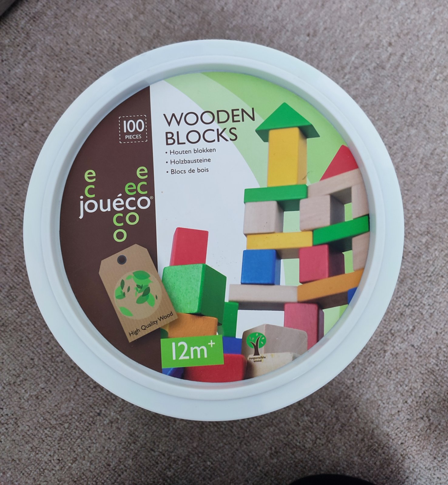 Jouéco Drevené kocky vo vedierku 100ks 12m+