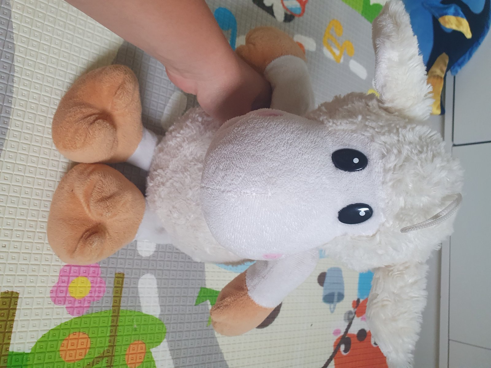 Značka Fisher price. Hrá upokojujúce melódie, bruško sa pohybuje hore dole, lampa svieti, hračka dýcha, bije mu srdiečko. Toto všetko sa dá zvlášť vypínať podľa potreby. Super pomôcka na zaspávani...