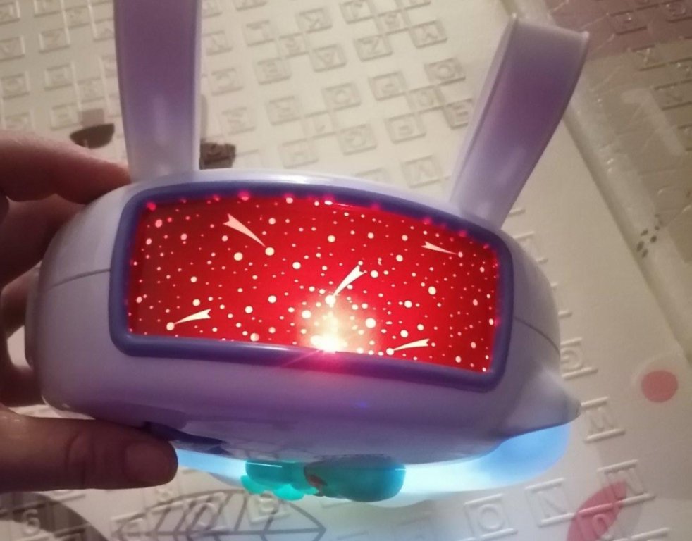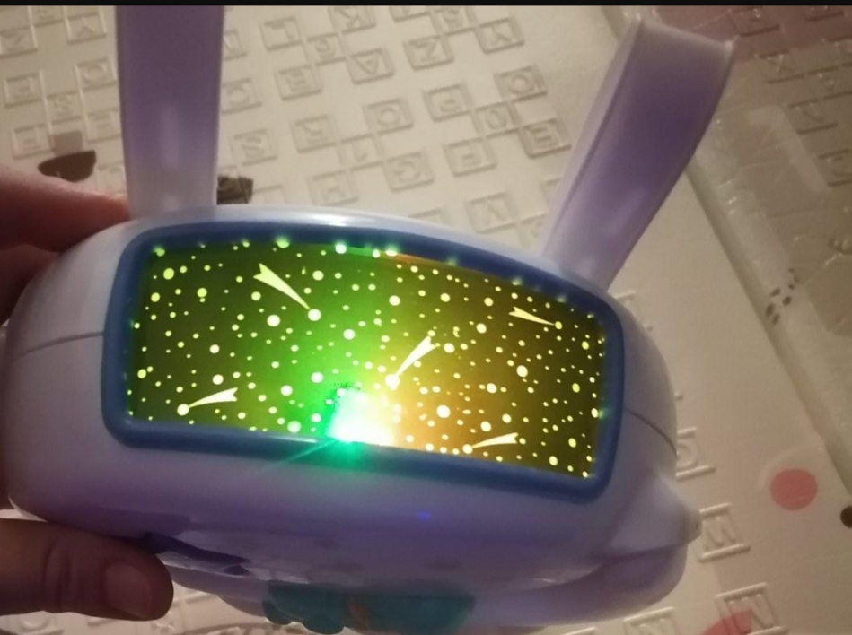 Projektor hra upokojujce piesne svieti, blika, nocna obloha roznej farby
