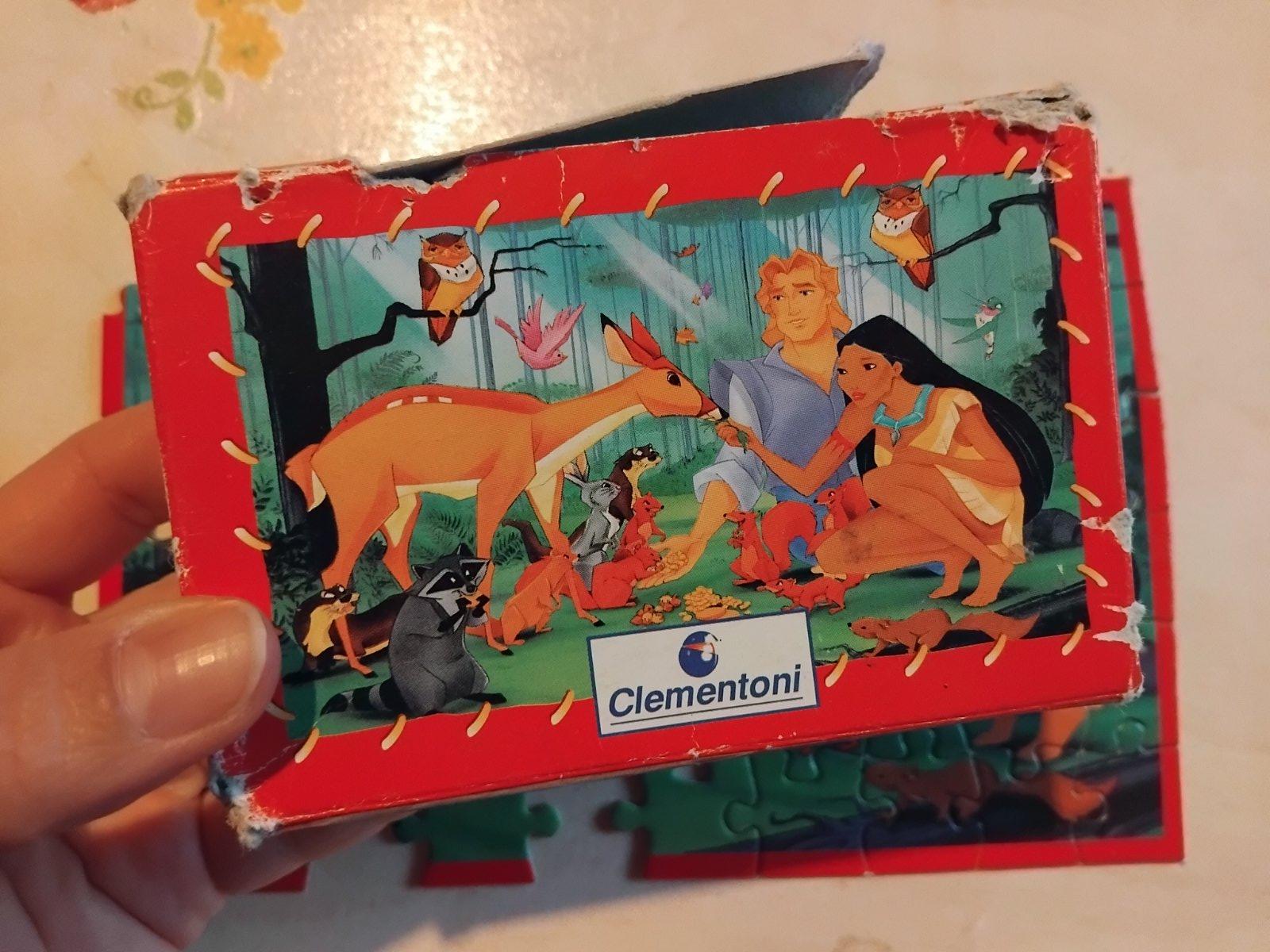 Retro puzzle Pocahontas. Zial viac dielikov chyba, tak skor niekomu na doplnenie. Krabica tiez v zlom stave.