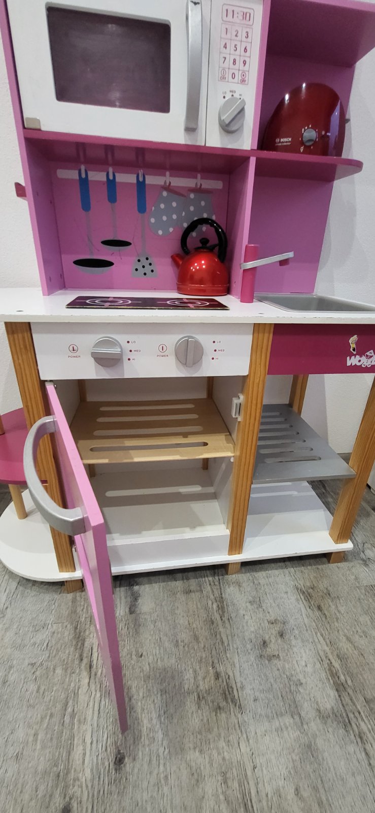 Predám detskú kuchynku, zachovalý stav, bežné známky používania, pribalím aj kanvicu a hriankovač zn.Bosch, čajník a kávovar, cena 20