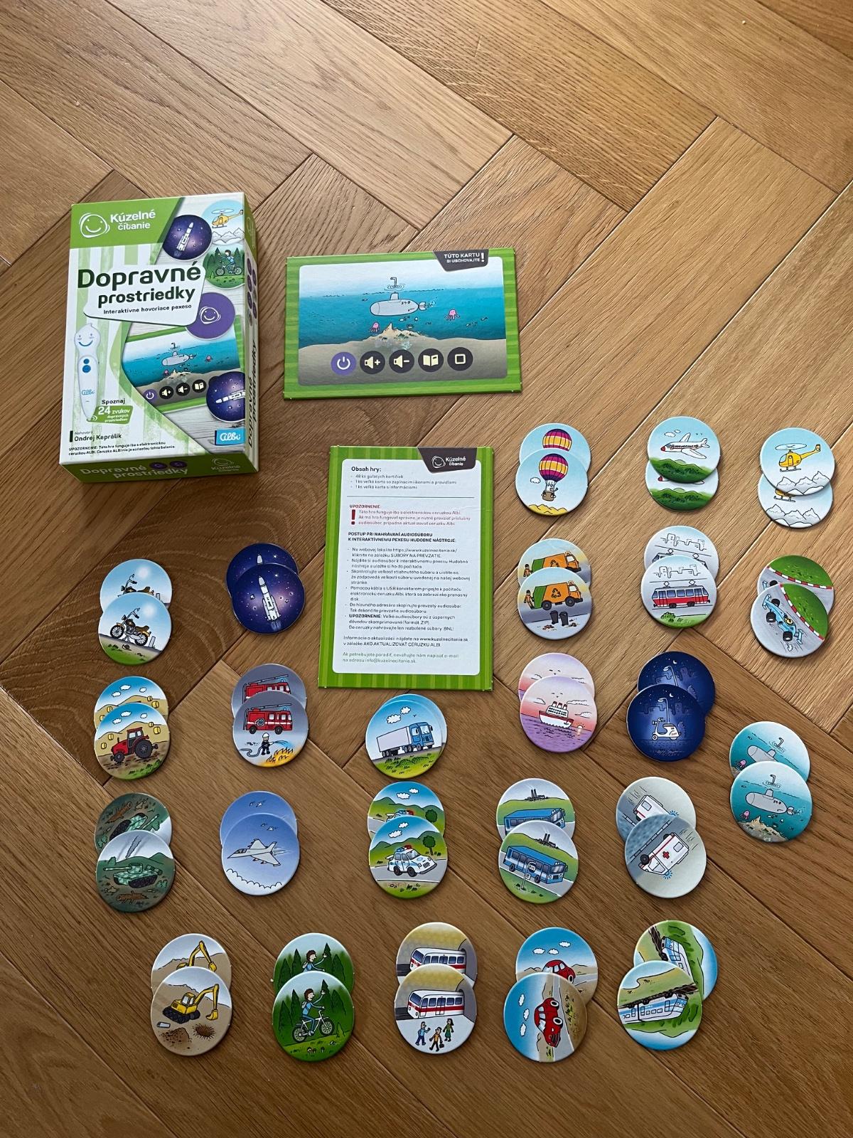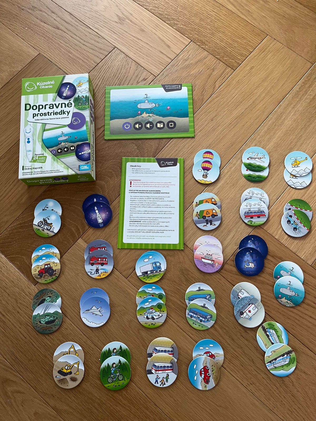 Kúzelné hovoriace pexeso Dopravné prostriedky kombinuje precvičovanie vizuálnej a sluchovej pamäti detí. Deti sa tak budú učiť rozpoznávať zvuky, ktoré nás obklopujú.