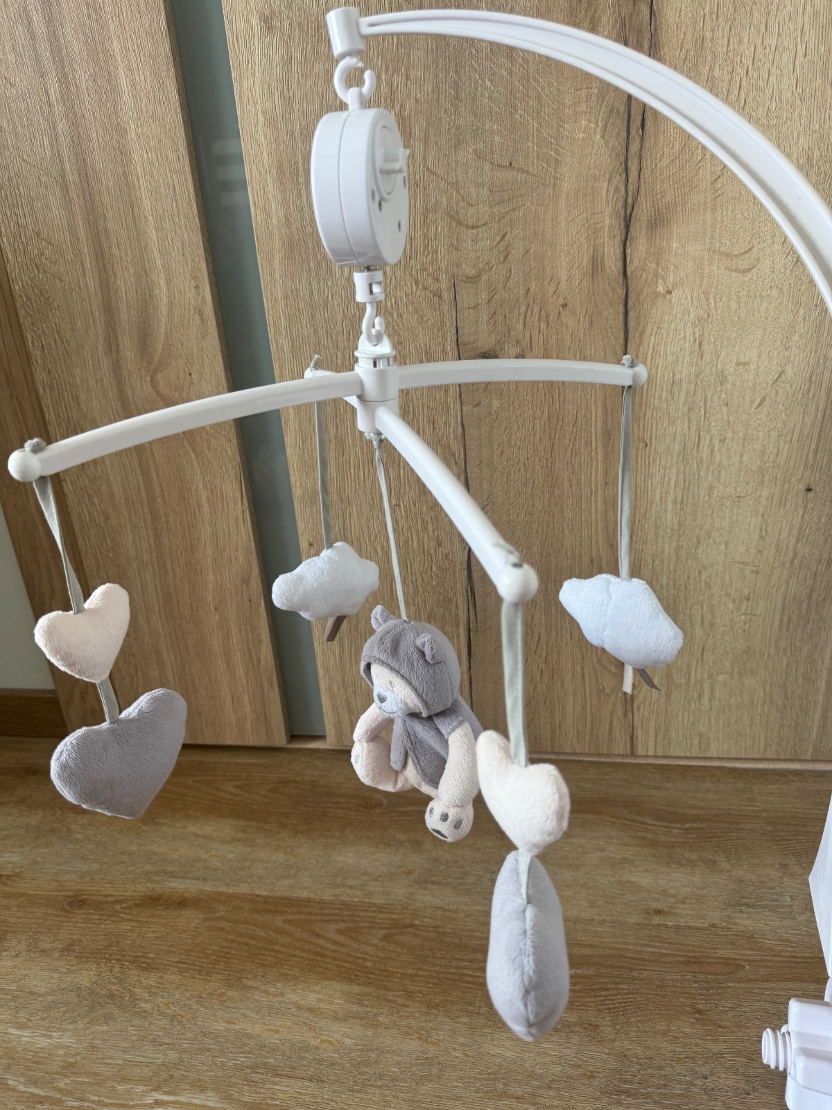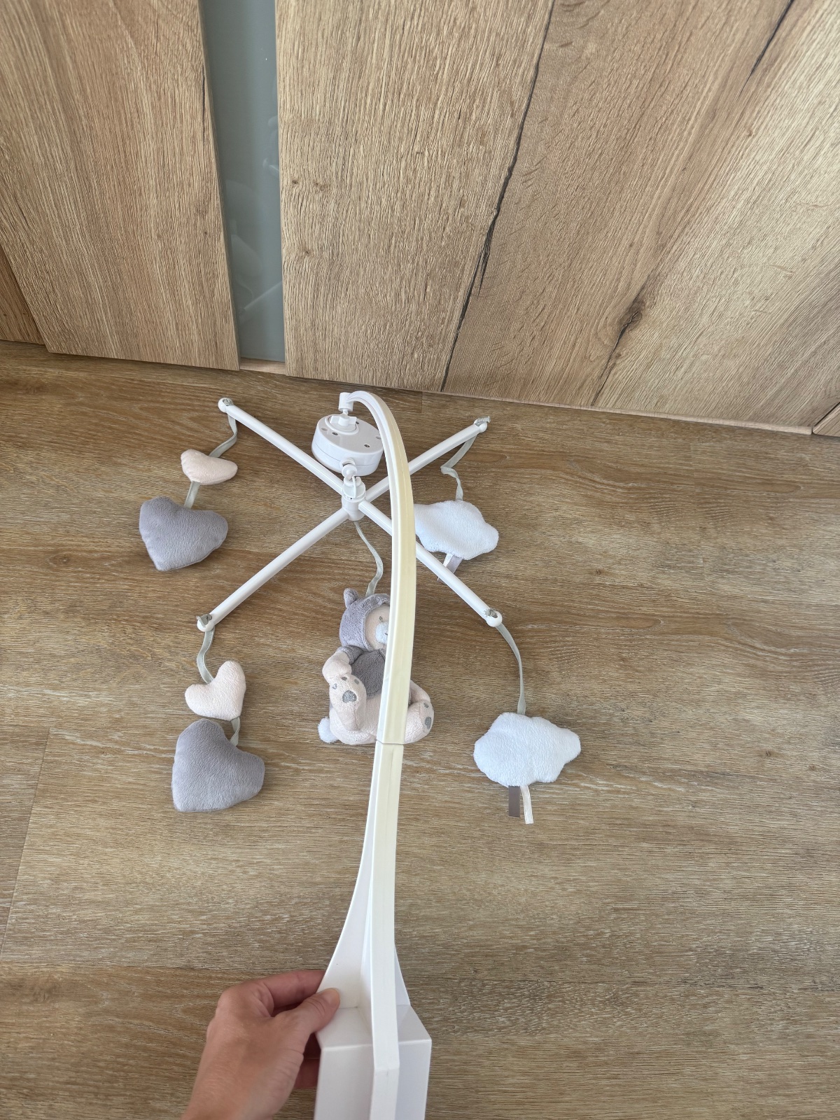 Ponúkam pekný hrací kolotoč so zavesenými hračkami medvedíkom, obláčikmi a srdiečkami v pekných neutrálnych farbách. Je vo výbornom stave akurát zadná strana plastového držiaka kde je zúžená časť je zažltnutá od slnka, z boku to však nie je vidno. Ponúkam viac pre detičky a i., možnosť vytvárať súpravy. Značka aj keď nie je uvedená je to Candide a pc bola cez 50eur. Poštovné podľa taríf.